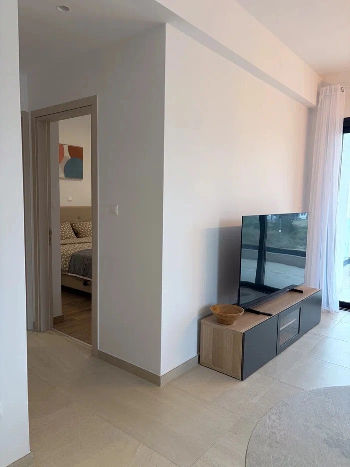 Two-bedroom apartment with a covered area of 75 m2 for rent in Neapolis, Limassol. The apartment is located on the 1st floor. The apartment includes two bedrooms, one bathroom, a kitchen, a living room and a balcony. The apartments are fully furnished and equipped with household appliances, air conditioning systems are installed in all rooms, electrical and plumbing communications have been replaced after a complete renovation. The building is equipped with an elevator, the balcony exits the living area, pets are allowed. The house was built in 2024, energy efficiency class A. The property is located in the Neapolis area, just 300 m from the beach, in a residential area of Limassol.