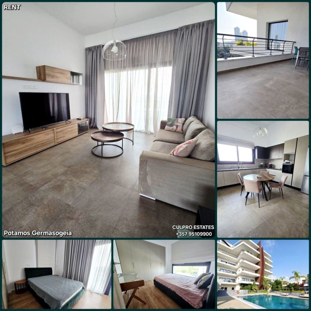 Rent 2-bedroom apartment in the Potamos Germasogeia area, Limassol. All infrastructure and the beach are within walking distance, not far from the Apollonia hotel. 4th floor. Living area: 88.8 sq m. Total area: 111.1. Kitchen. Living room. 2 bedrooms. Bathroom + guest toilet. Veranda. VRV air conditioning. Underfloor heating. Storage room: 4.1 sq m. Parking for 2 spaces. Energy efficiency class B. In the complex: reception, pool, sauna, gym, playground. Price: 2,700 + 2 deposits. Agency CULPRO Estates Ltd L.N 197/E R.N 1189 +357 95109900 +357 95592209 H115
