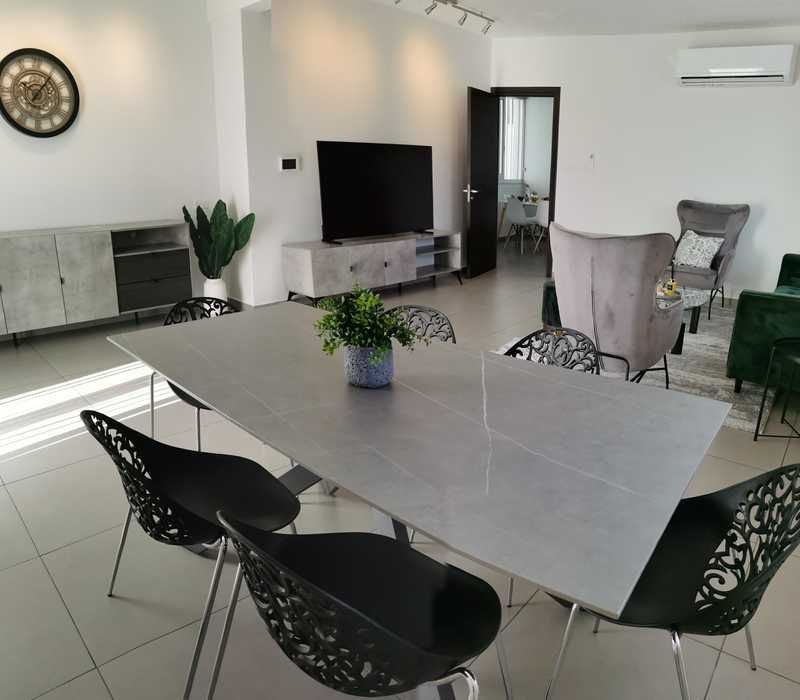 RENT apartment Zakaki, Limassol. 3 bedrooms. 2 bathrooms. 2nd floor. fully furnished. air conditioners in all rooms. solar panels. spacious balcony. parking space. intercom with camera. hidden LED lighting. Price 1700 euros + deposit. R1216 L627