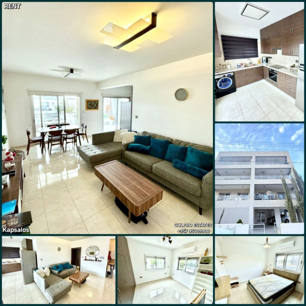 Rent 3-bedroom apartment in the Kapsalos area, Limassol. All infrastructure within walking distance, not far from the Alphamega supermarket and Lidl. 1st floor. Living area: 100 sq m. Total area: 120 sq m. Kitchen. Living room. 3 bedrooms. Bathrooms: 2 + guest toilet. Veranda. Storage room. Covered parking. Year of construction: 2017. Pets allowed. Price: 1,900 (negotiable). Agency CULPRO ESTATES Ltd L.N 197/E R.N 1189 +357 95592209 +357 95592209 A162