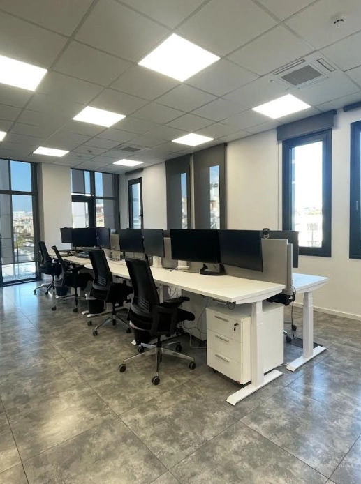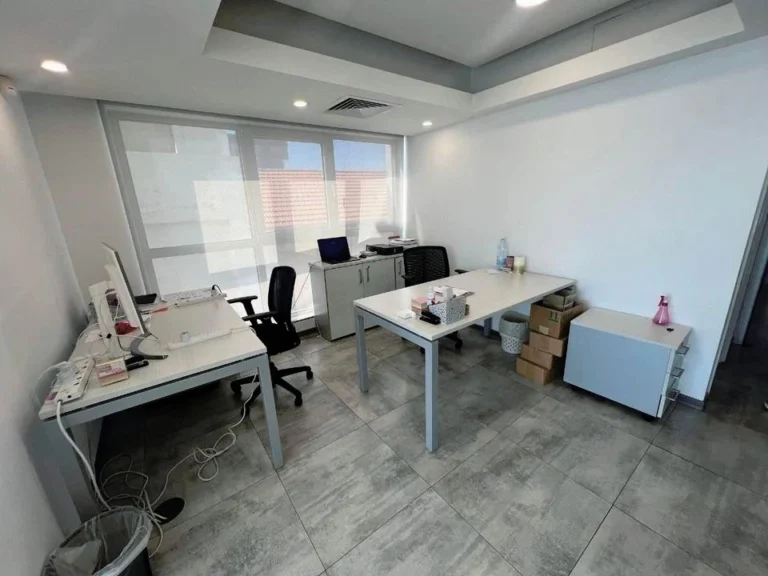 Office for rent in a residential complex in Chrysopolitissa, Larnaca. The office has 3 offices and 3 bathrooms, an equipped open-plan kitchen, a covered balcony and a roof garden. The internal area is 104m2, the covered balcony is 22m2, the roof garden is 44m2. There are air conditioners in all rooms. One covered parking space. The central location. The entire infrastructure is in the immediate vicinity.