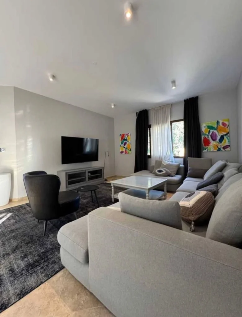 A beautifully renovated modern independent house in the heart of Agios Tychonas village , one of Limassol’s most prestigious areas. Located just 2.3 km from the Four Seasons Hotel , the property offers sea, hill, and village views.