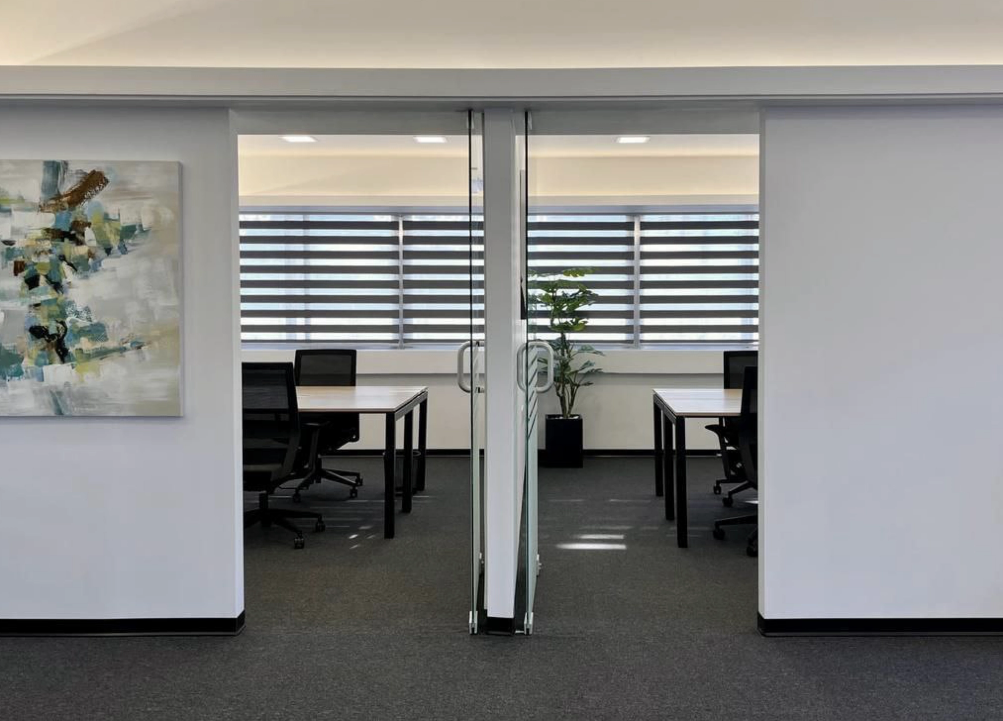 Located on the 3rd floor, the office features a reception area, kitchen, open-plan room, 2 private offices, a conference room, and 2 WCs. The walls will be freshly painted before occupancy.