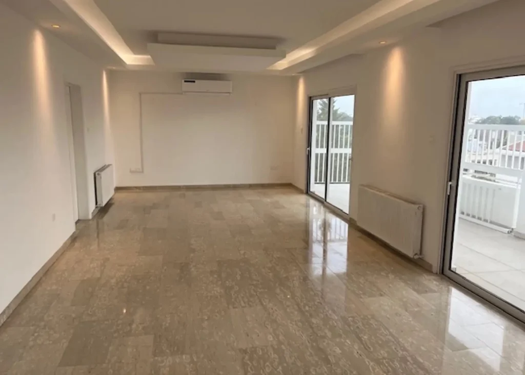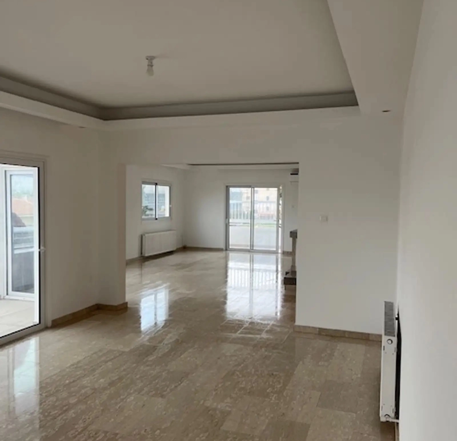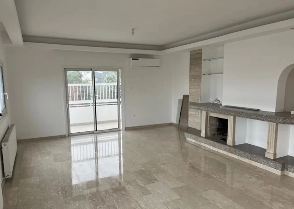 Four-bedroom penthouse of 250 m2 for rent in Egkomi, Nicosia. The penthouse occupies the entire 2nd floor of the building and is fully renovated. The penthouse includes 4 bedrooms, 3 bathrooms, a kitchen, a living room with a fireplace, balconies and verandas around the perimeter of the floor, as well as a garden. The property is equipped with household appliances and air conditioning in all rooms, new A/C split systems, a diesel central heating system, a fireplace, and the installation of a PV System (Net Metering) is provided. Covered parking is provided. Energy efficiency class B.