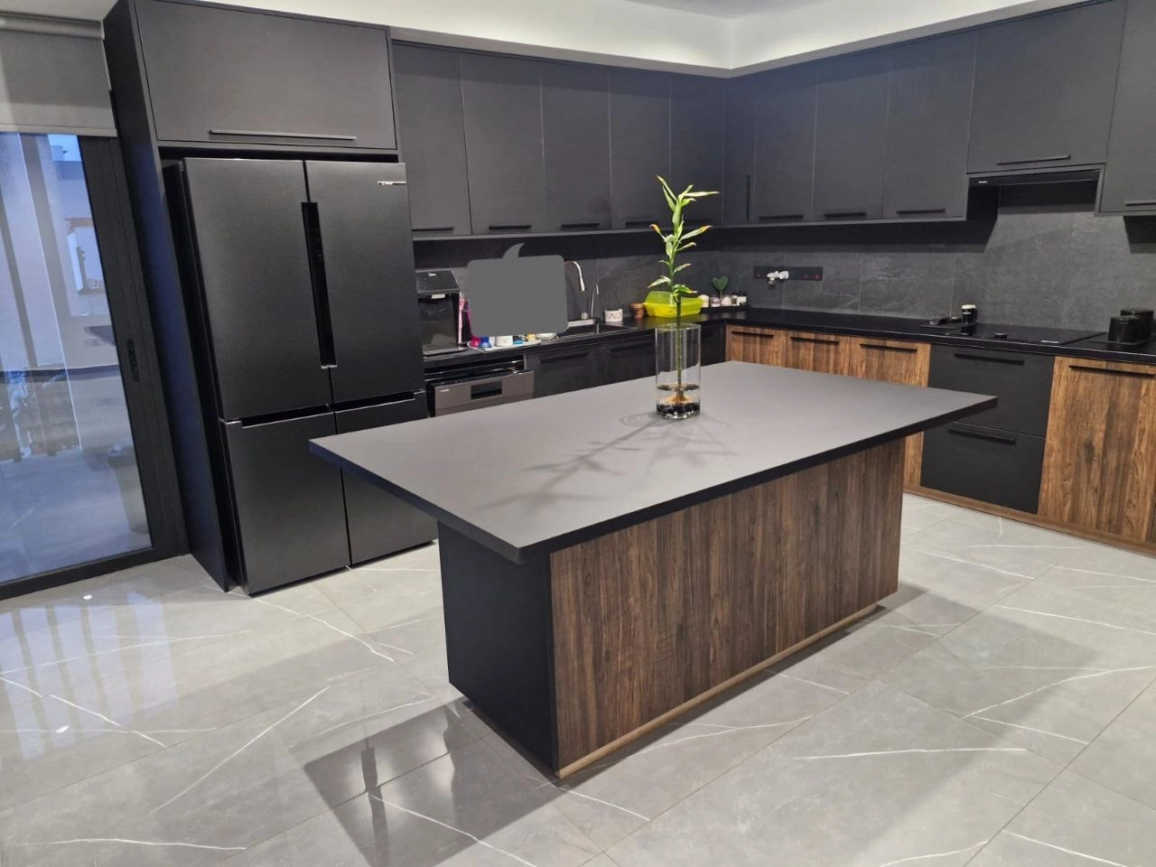 Three-bedroom apartment with a covered area of 201 m2 for rent in Germasogeia, Limassol. The apartments include 3 bedrooms, 2 bathrooms and bathrooms, a living area, a kitchen and a balcony. The apartment is equipped with household appliances, an air conditioning system is installed in all rooms. The property is a new modern house with 165 m2 of covered spaces and 36 m2 of covered terrace; one of the bedrooms is equipped with a private bathroom with shower, the second bathroom is equipped with a bathtub.