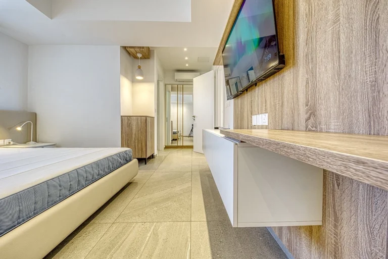 A luxury two-bedroom apartment available for rent in Neapolis, Limassol, located on the 4th floor of a beachfront building with breathtaking, unobstructed sea views. Just a few steps from the sandy beach and a short drive from the city centre, Old Town, Old Port, and Limassol Marina.