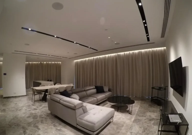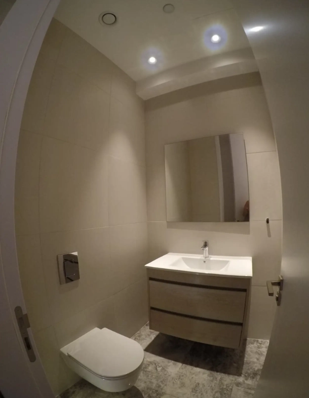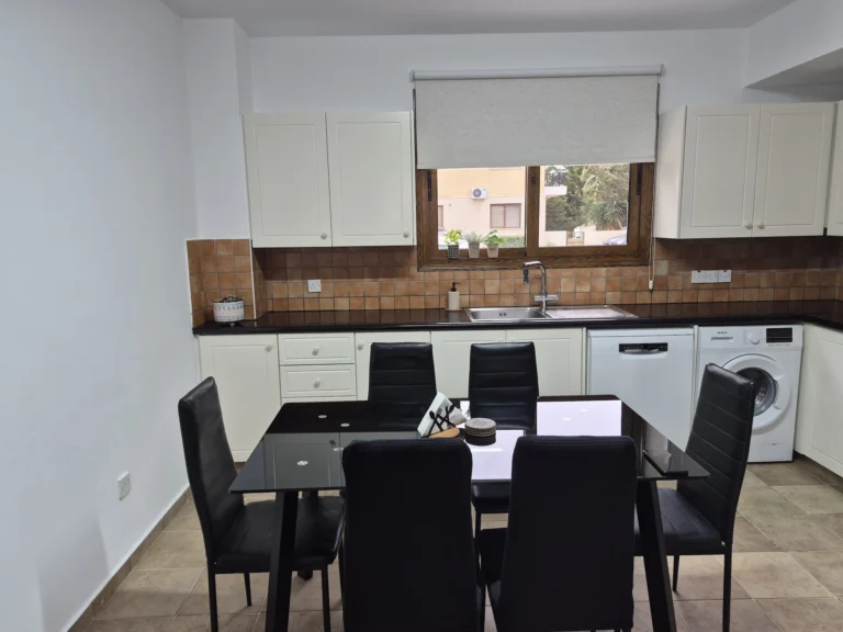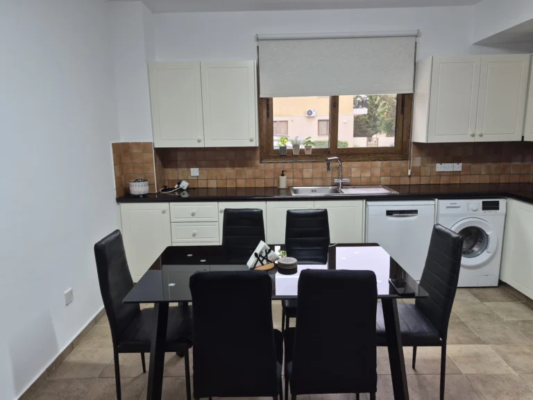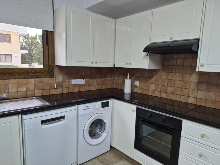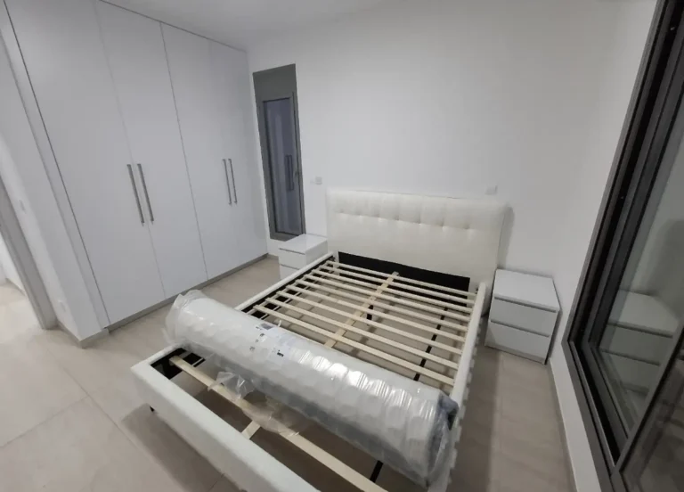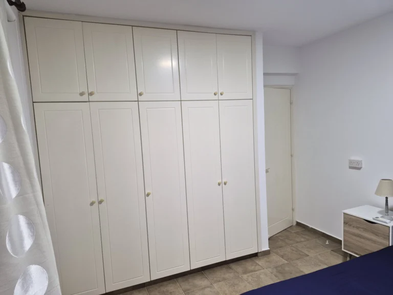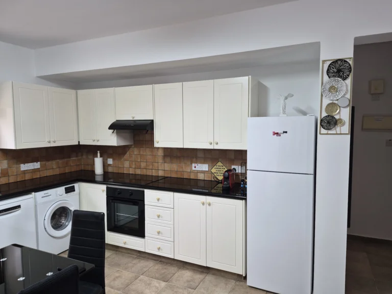 A cozy one-bedroom apartment is for rent in Larnaca, located in a convenient area near Finikoudes Beach, the Medieval Castle, and the Church of Saint Lazarus. The apartment is decorated in warm tones and features a living room with a sofa and smart TV, a bedroom with a double bed, a fully equipped kitchen, and a private balcony. It also includes a washing machine and free parking.