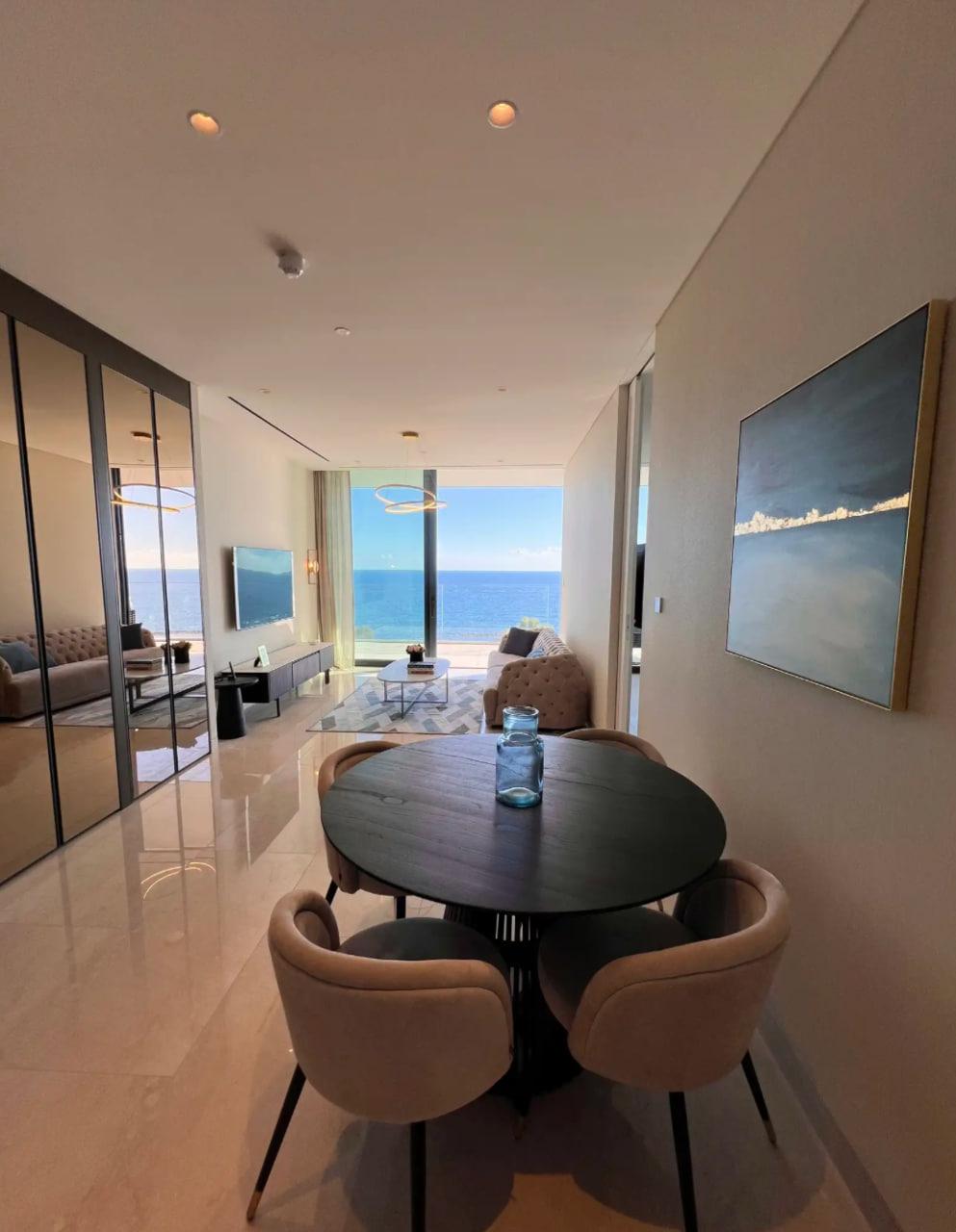 RENT Limassol — Mouttagiaka Tourist Area The Ritz‑Carlton Bedrooms: 1 Bathrooms: 2 Total area: 106 m² Floor: 6 Year built: 2023 Fully furnished Air conditioning in all rooms Balcony with sea view Fireplace Storage room Underground parking (1 space included) Elevator Alarm Pool (indoor and outdoor) SPA and 2 types of saunas Tennis, paddle Basketball and football Playground and kids club Private cinema Golf simulator Concierge service Restaurant Novikov in the building Pets: allowed Price: 5500 € / month Reg: AM: 1256/AA258/E