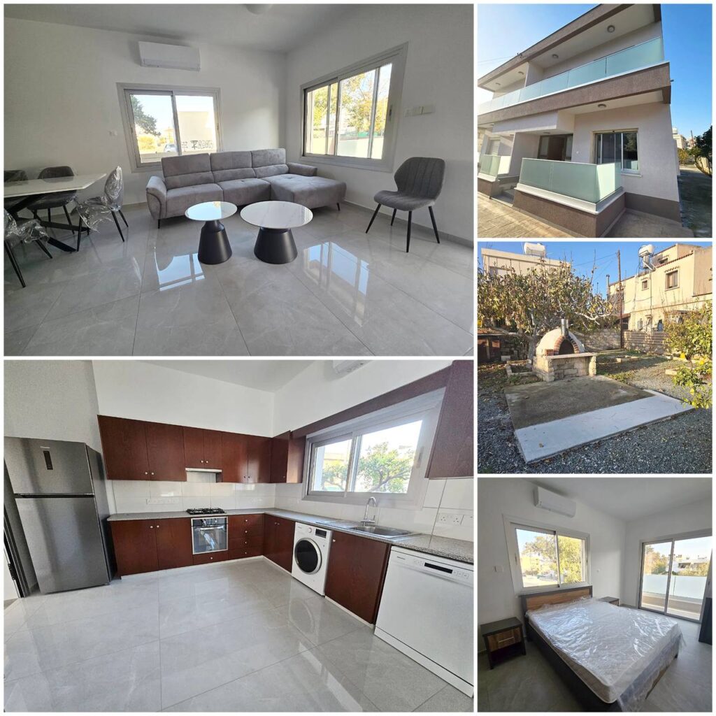4837 RENT Limassol House 135m2 Location: Zakaki Semi-detached Land area 380m2 Fully renovated 3 bedrooms 2 bathrooms (bathtub+shower) New air conditioners Photovoltaics Balcony Double-glazed windows Mosquito nets Electric blinds New furniture and appliances ! Courtyard with fruit trees Covered parking for 2 cars No animals !!! There is a playground nearby Price 1800€ LN56/E,RN186