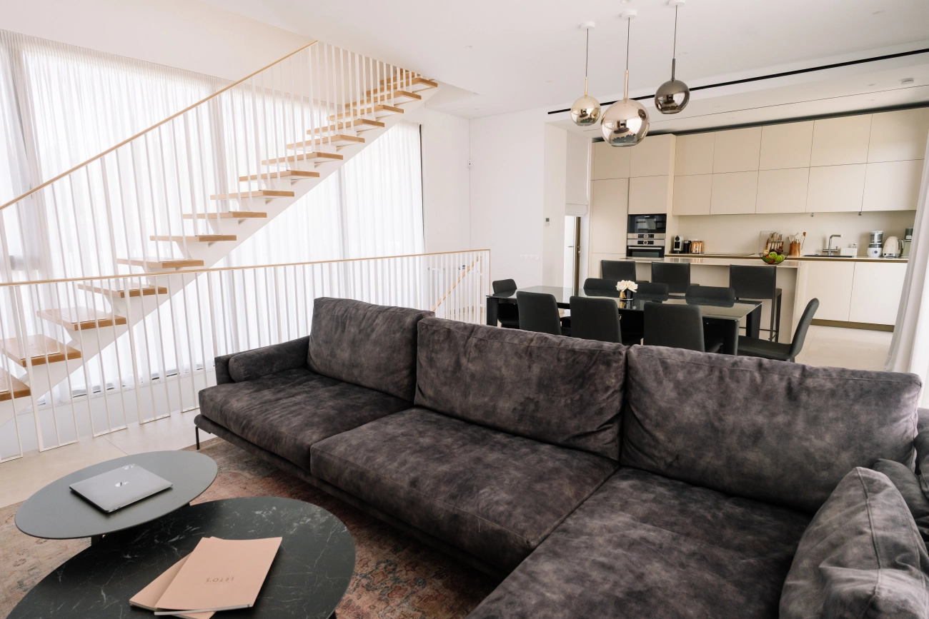For rent : 4-bedroom villa in a gated complex in Pegeia, Paphos. A modern, newly built villa, fully equipped, with its own swimming pool. The villa is located close to the sea and beach. Living area – 230 m², total area – 260 m², plot size – 400 m². The house features 4 bedrooms and 3 bathrooms. An excellent choice for comfortable living in a prestigious area.