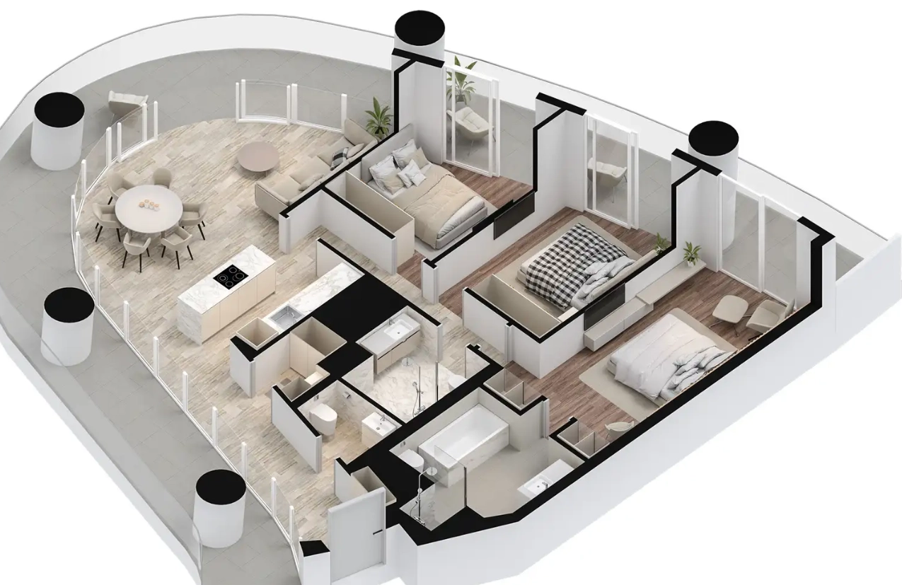 For long-term rent: a modern two-bedroom apartment in a prestigious complex in Agia Napa, Famagusta. The apartment is located in an elite residence with top-class facilities including a fitness center, spa area, landscaped gardens, reception, 24/7 security, automated building management system, concierge service, and private parking. A 2,000 m² rooftop swimming pool offers panoramic views of the marina. The building features three high-tech elevators.The apartment is fully furnished and consists of two bedrooms, two bathrooms, a spacious living room, a balcony, and a modern kitchen equipped with all necessary appliances: refrigerator, oven, microwave, and washing machine. Air conditioning is installed in every room.Located within walking distance to the beach, restaurants, shops, and nightlife venues. A private covered parking space is included.