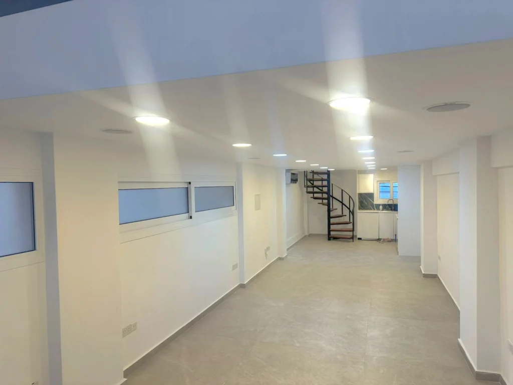 Available for rent, this modern ground-floor office spans an internal space of 130 m² (65sqm ground floor plus 65sqm mezzanine) in the central area of Agios Nicolaos. Fully renovated in 2025, the office offers a fresh and professional environment, ideal for a range of business needs. The layout is open and flexible, allowing you to create a workspace that suits your operations.