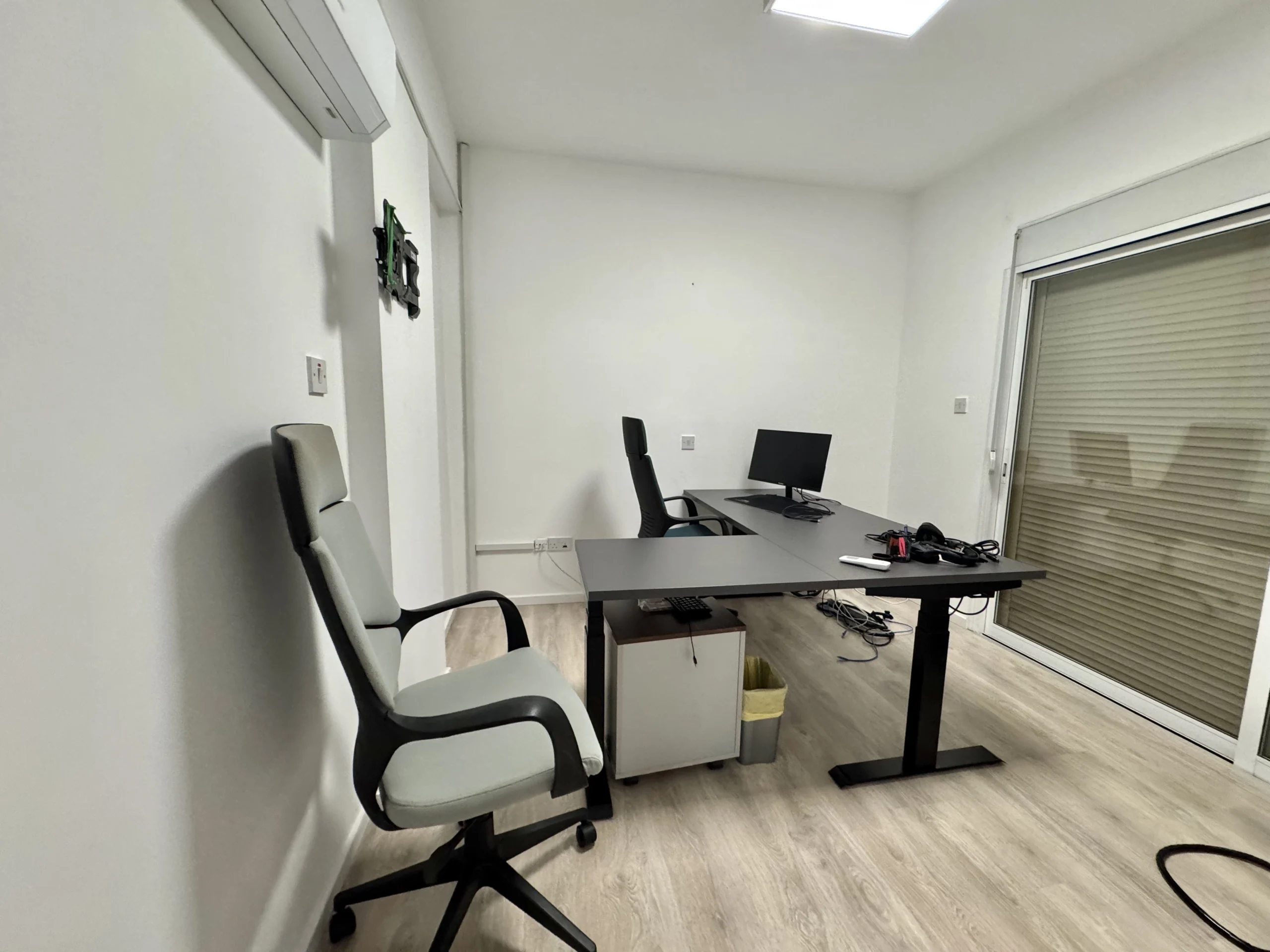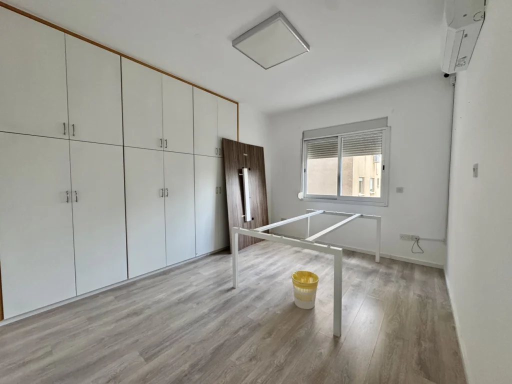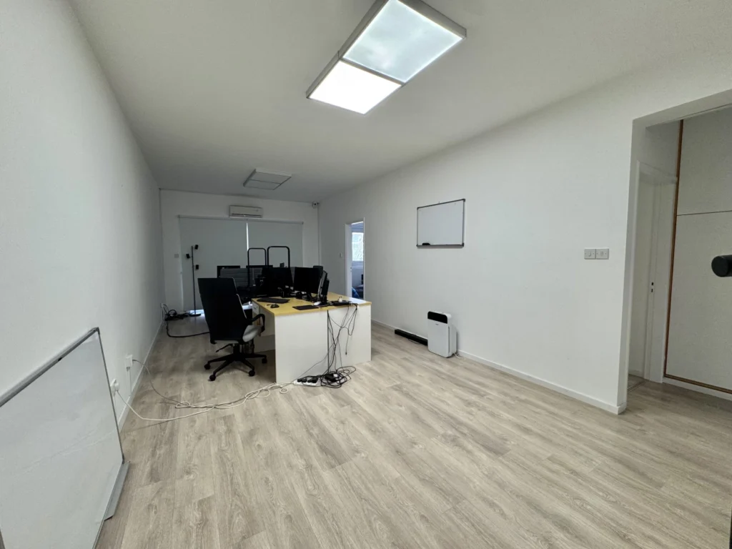 Office space of 115 m2 for rent, located on the 1st floor in Neapolis, Limassol. The office includes four separate offices, a kitchen, a server room, two toilets including a bathroom, as well as a balcony overlooking the main street and an additional balcony in one of the office premises. The room is unfurnished, completely renovated and equipped with laminate flooring, new air conditioners, professional office lighting and a structured cabling system. There is one covered parking space attached to the office, as well as an additional parking space in front of the building. The property is located on one of the central streets of the city, opposite the Zorbas bakery, with convenient access to urban infrastructure.