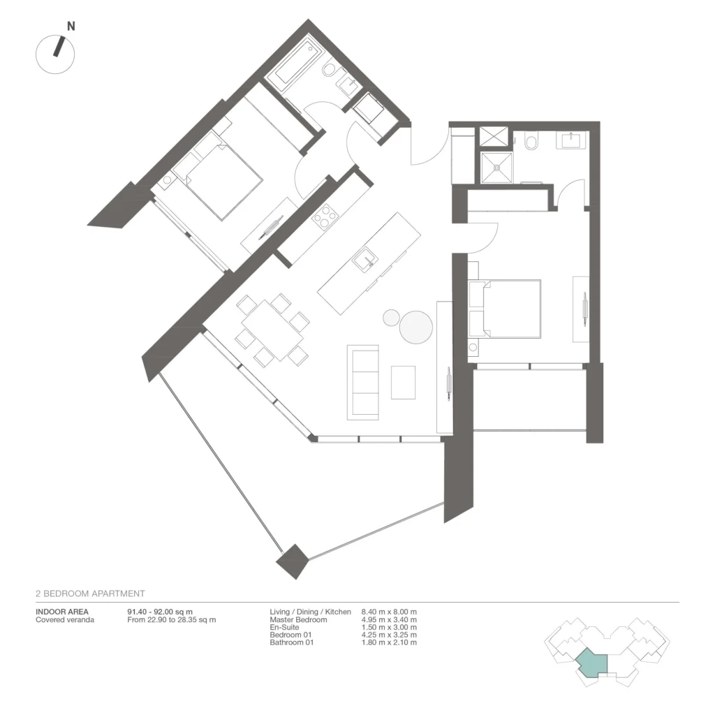 ✔ Indoor area: 90.5 m²