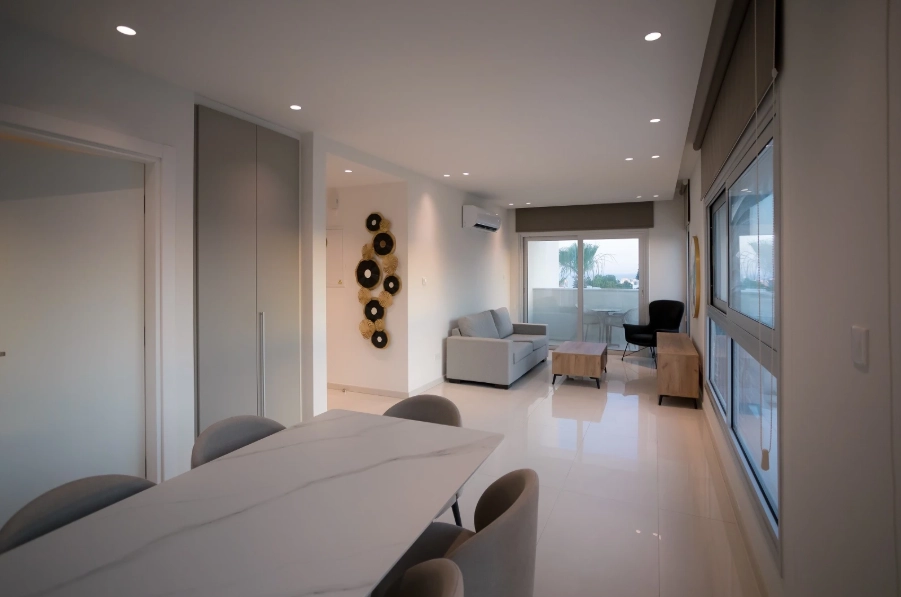 This spacious 2-bedroom apartment is ideal for long-term rental and is located in a newly constructed block of only four units, situated in the highly sought-after area of Germasogeia in Limassol. Nestled in a tranquil residential neighborhood, this apartment is just 2km away from a beautiful sandy beach. Additionally, all essential amenities such as banks, supermarkets, shops, and restaurants can be found within a kilometer from the property. Its strategic location provides easy access to the highway, making it an excellent choice for commuters or frequent travelers, as the apartment is conveniently situated midway between the Larnaca and Pafos airports, both approximately 50km away.