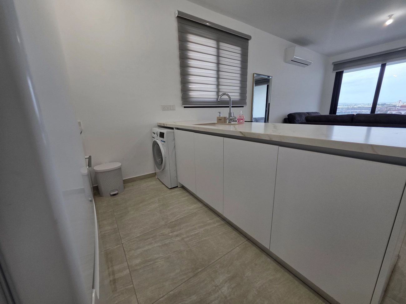 Brand new 2 bedroom penthouse for rent in Kamares, Larnaca. It is the first rental. The penthouse is fully furnished and equipped with necessary household appliances. A living room with an open-plan kitchen-dining room with access to a covered veranda, two bedrooms, two showers, and a spacious roof garden with an equipped toilet. The project provides for a covered parking space and a storage room. A supermarket, a bank, schools, a kindergarten, a gym are in immediate proximity. The beach, cafes and restaurants are only a 5-minute drive away.