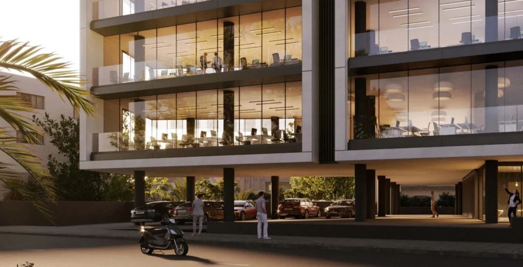 Office space for rent in the area of Mesa Geitonia, Limassol, designed by the best architects. Located in the very center of the famous business district. 2 spacious offices on each floor. Common amenities include a reception and 23 parking spaces. Basic building with utilities, without finishing; High ceilings (3.20 m); VRV central air conditioning system; Thermo-aluminum window frames.