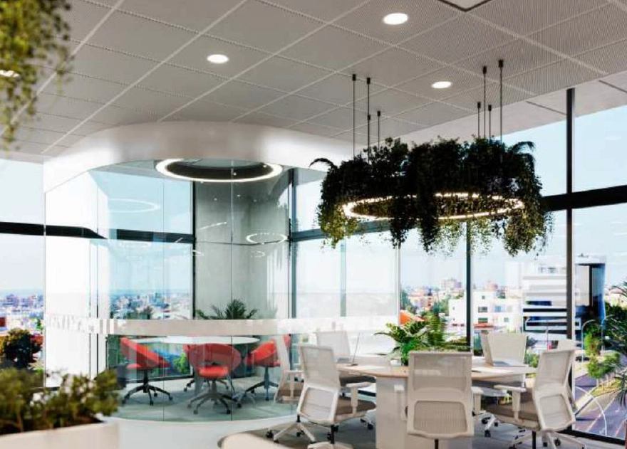 South-oriented, the building enjoys open views across the city of Limassol and towards the sea, adding to the prestige and appeal of the workspace. Its bioclimatic architectural design incorporates energy-efficient solutions, with approximately 25% of its energy needs generated by renewable sources through photovoltaic systems. This contributes to lower operational costs and aligns with modern sustainability standards. Combining a strategic location, contemporary design, energy efficiency, and practical amenities, this property presents a premium commercial opportunity in one of Limassol’s most sought-after business districts.