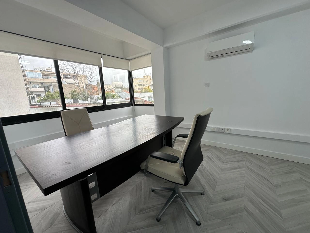 This bright and functional office features a flexible open-plan layout complemented by two separate rooms, making it ideal for companies seeking both collaborative and private workspaces.