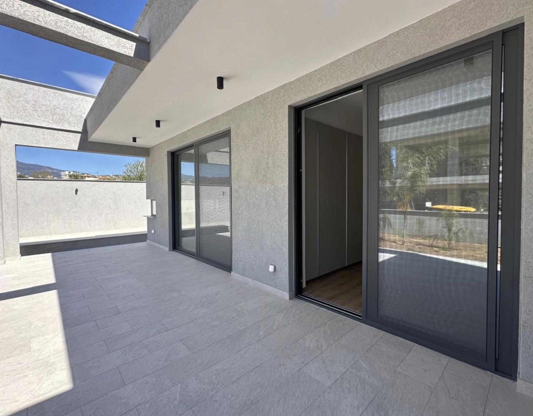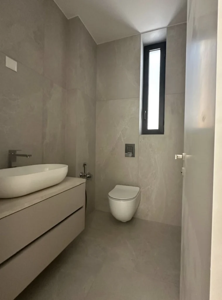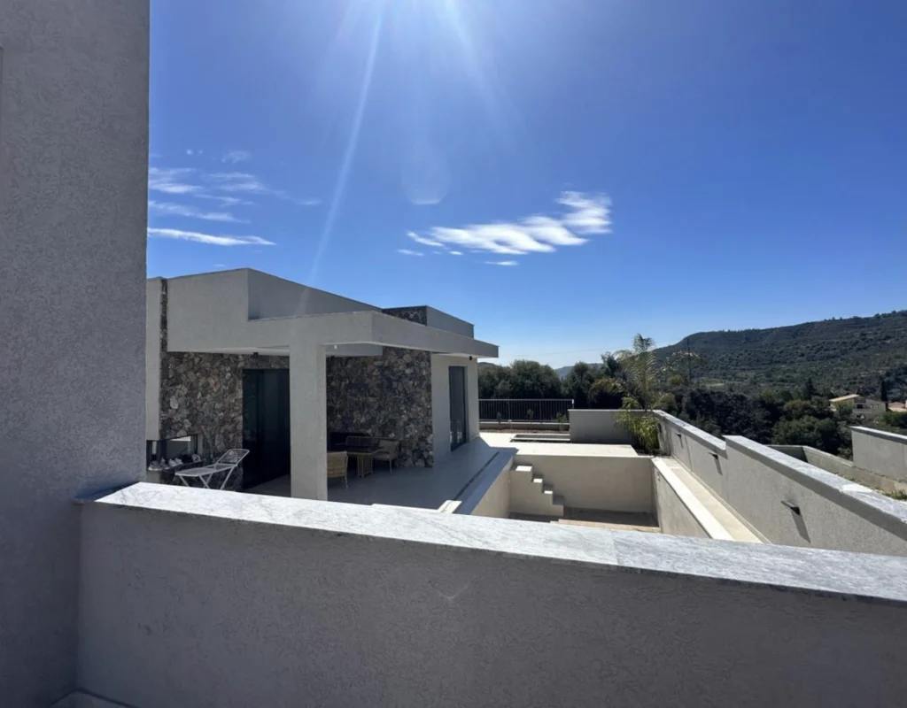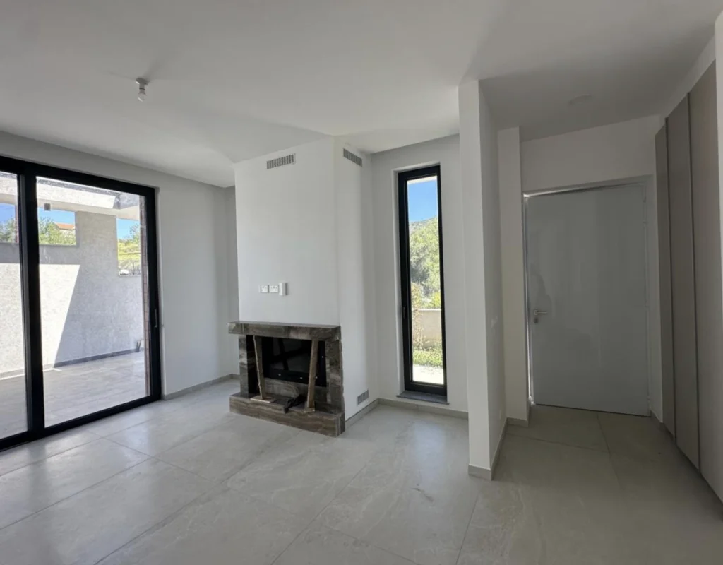 The villa is constructed with a reinforced concrete structure, beams, and slabs, with externally insulated brick partition walls. The exterior walls are built with 25 cm thick thermobricks and additionally insulated with 8 cm polystyrene, ensuring excellent thermal efficiency and comfort throughout the year.