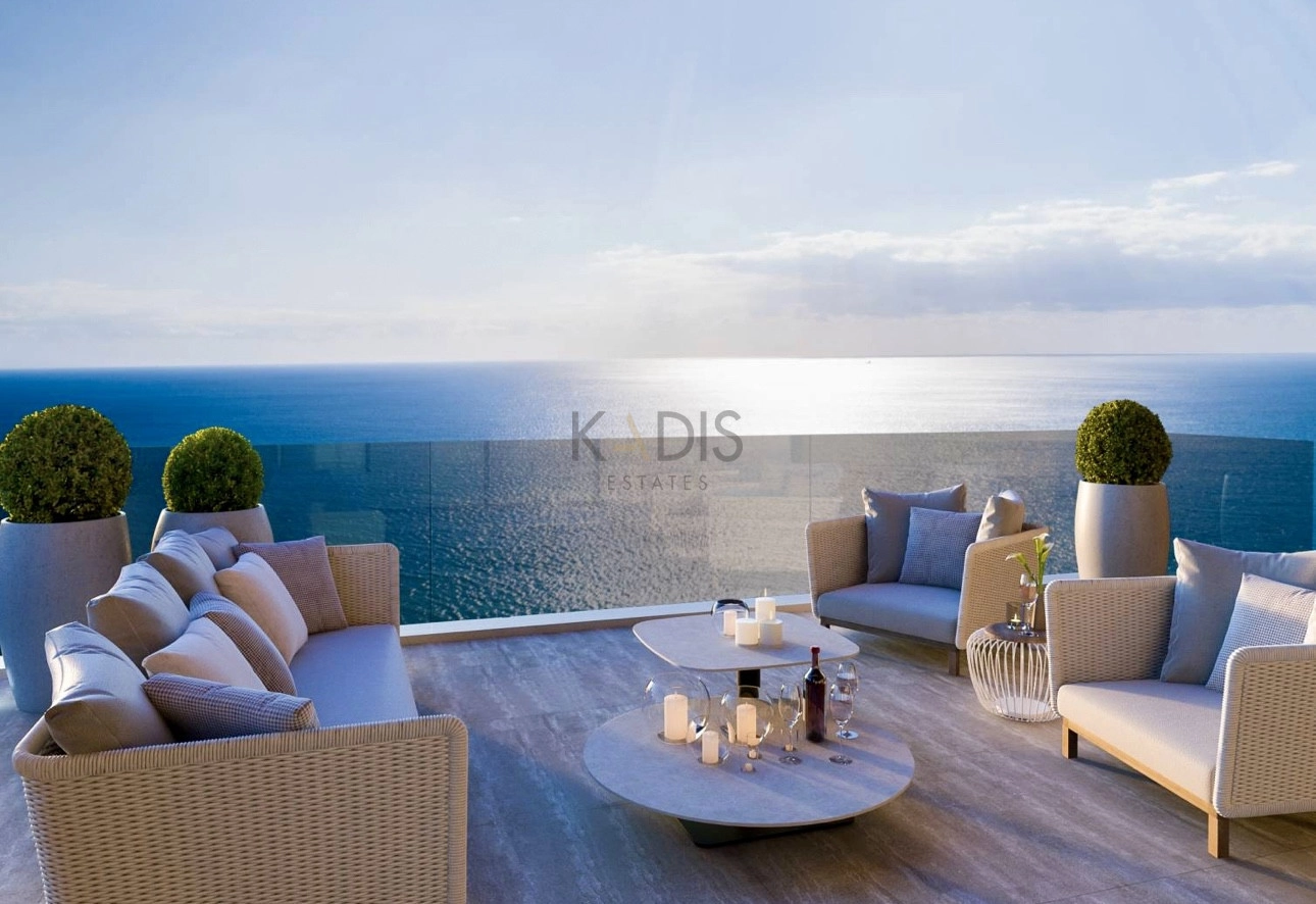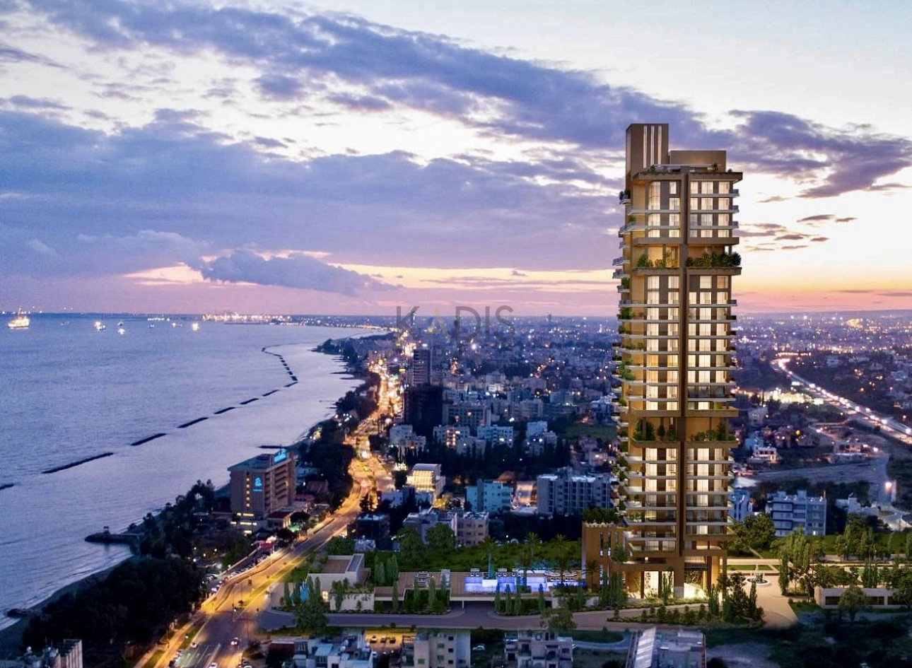 A spacious 2-bedroom apartment right across from the sea in Agios Tychonas, offering panoramic views, 5-star building amenities, and just a short walk to the beach and local shops.