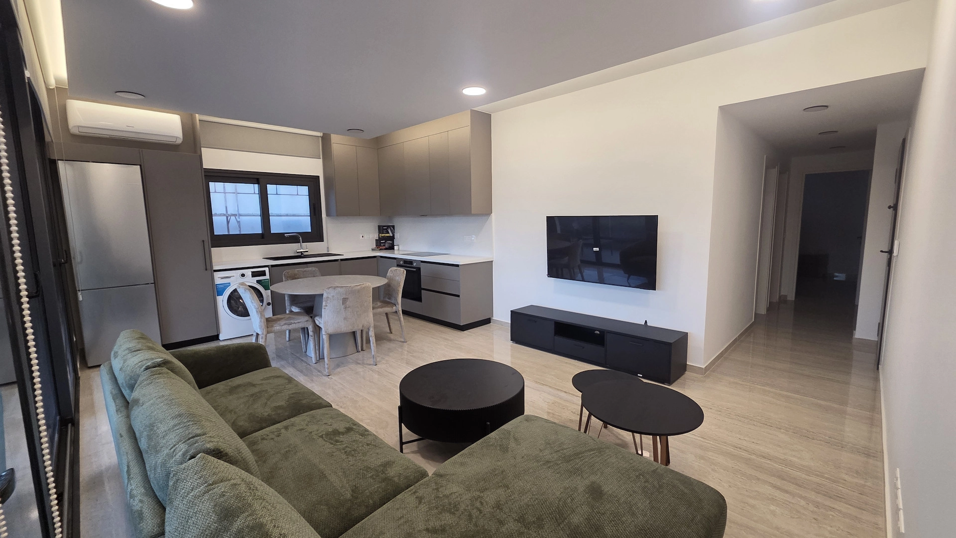 This spacious and modern apartment is available to rent in the desirable area of Agios Athanasios. Offering 110 m² of covered space, ( 80m² internal area, 30 m² covered veranda) it features two large bedrooms and two contemporary bathrooms, making it ideal for couples or small families. The residence is located on the first floor of a three-storey building, with easy access via an elevator. Built in 2026, the apartment is key ready and boasts an A+ energy efficiency rating, ensuring both comfort and savings.