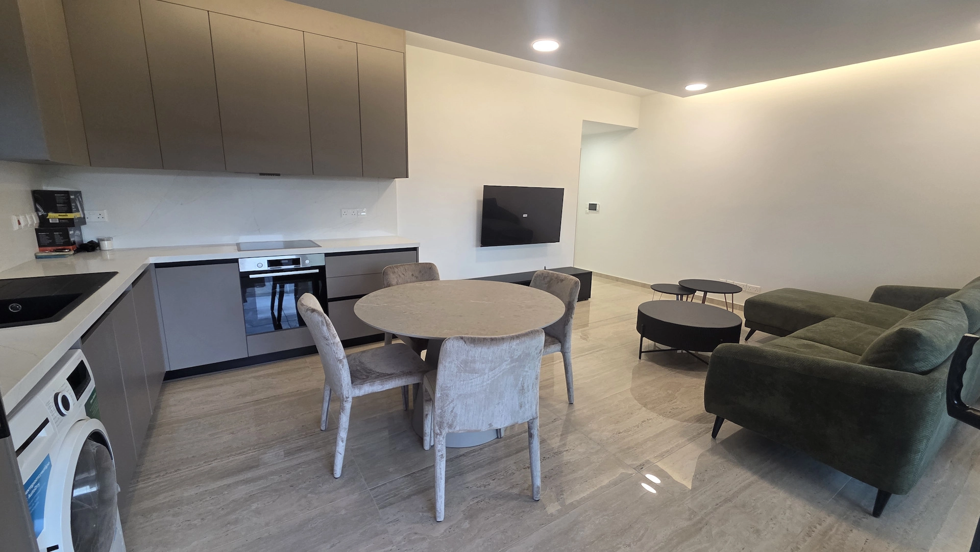 Inside, you will find a fully furnished interior with stylish, high-quality furniture and finishes. The bright and airy living area connects seamlessly to a well-equipped kitchen, designed for everyday convenience. Large windows invite plenty of natural light, creating a warm and welcoming atmosphere.