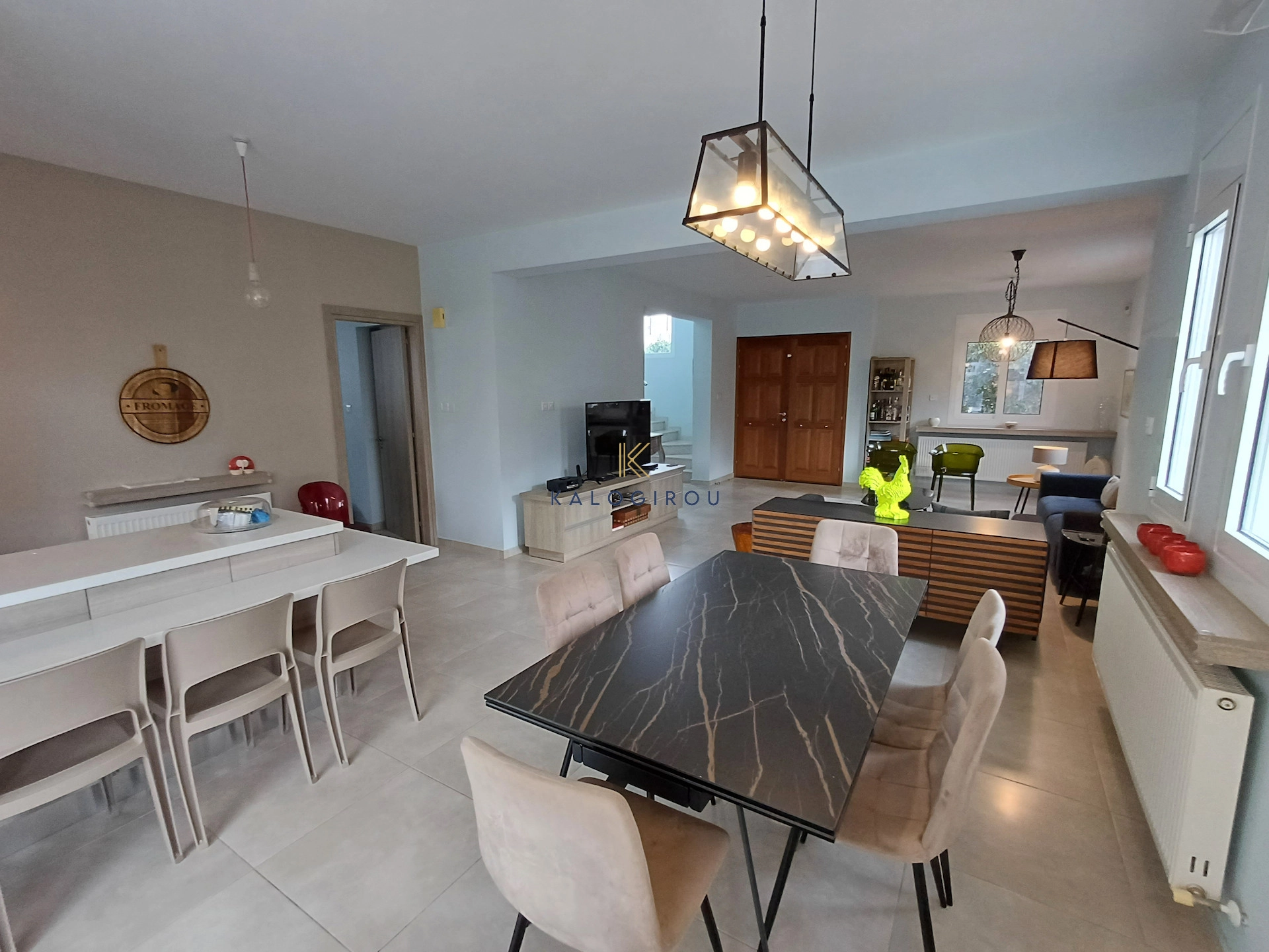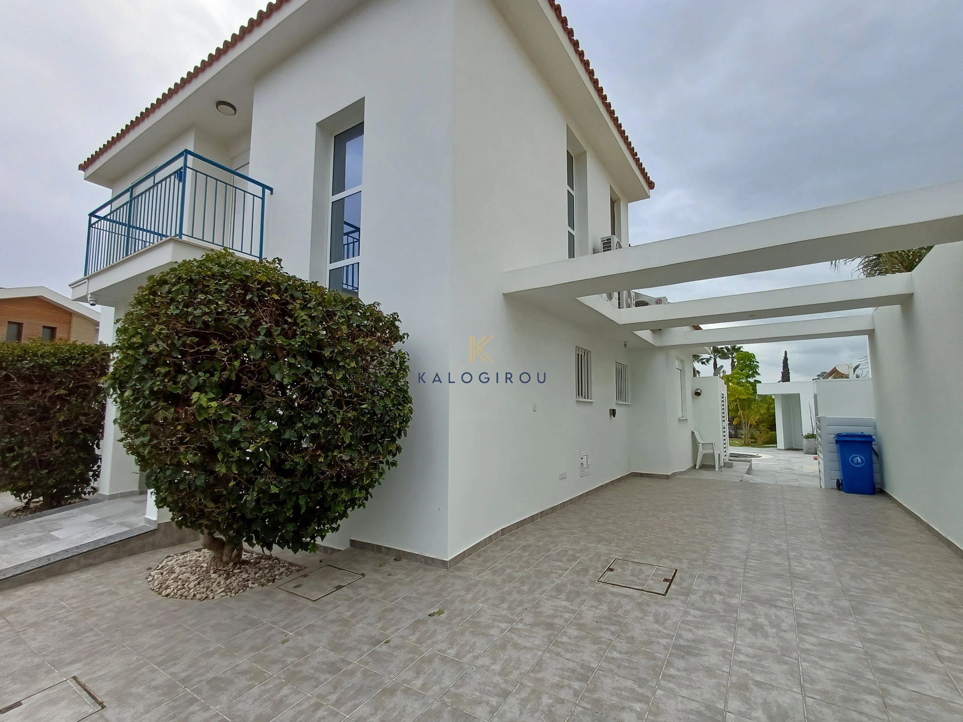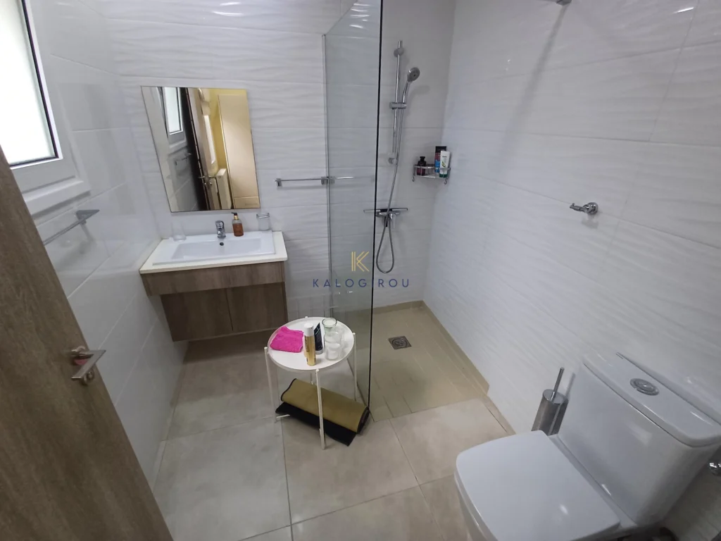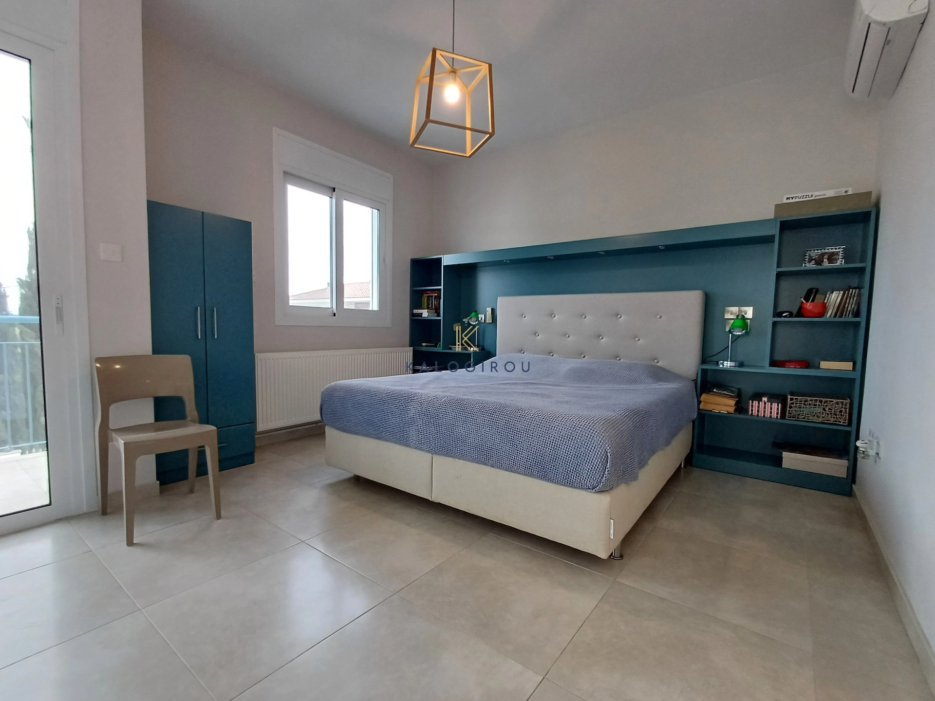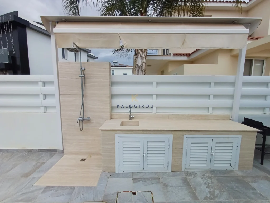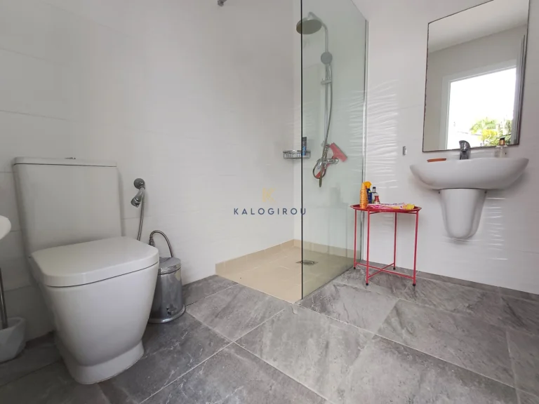 House for rent in Larnaca, Pyla area. The property was built in 2015, set on a 700 m² corner plot, with an internal covered area of 250 m². On the ground floor, the house comprises a spacious open-plan kitchen, living and dining area, a guest toilet, storage space under the stairs, and one bedroom with en-suite shower. On the first floor, there are three bedrooms, including a large master bedroom with en-suite shower, and a big family bathroom with shower that serves the remaining two bedrooms.
