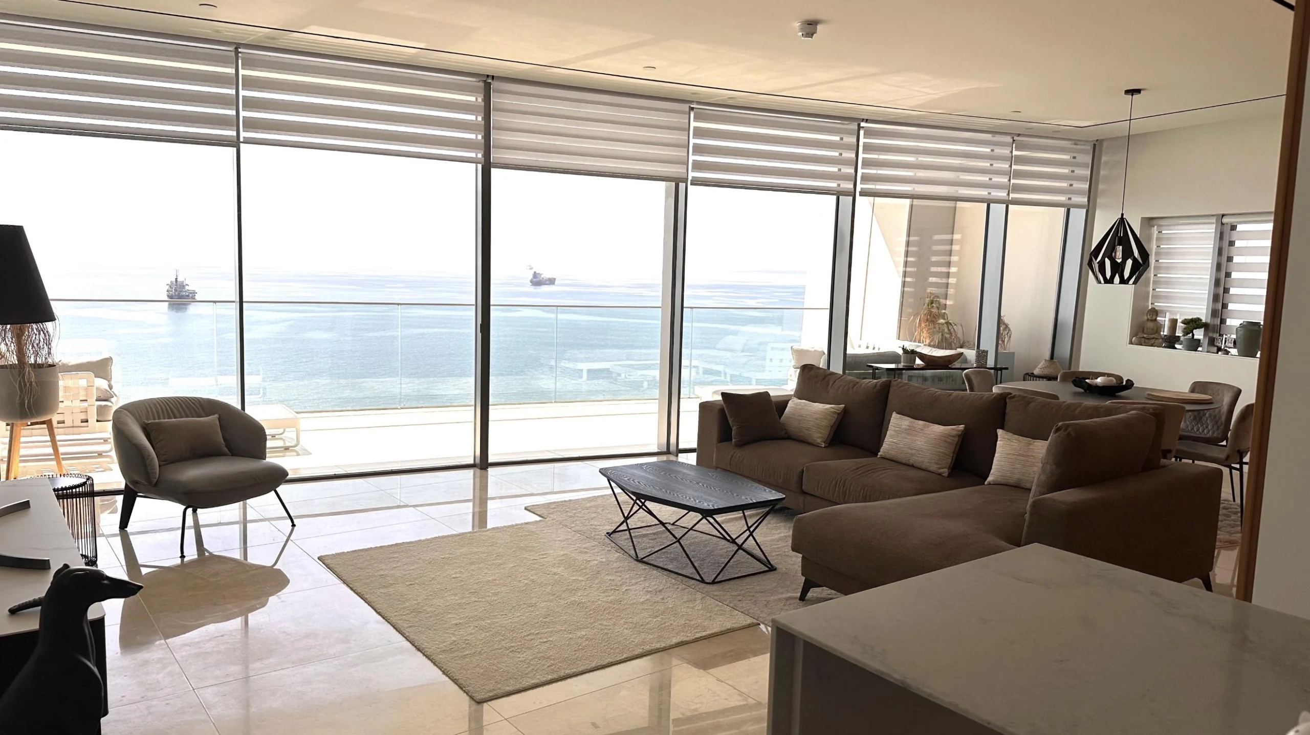 Three bedroom apartment for rent in a prestigious complex in the Neapolis area of Limassol, on the first line by the sea. The spacious apartment of 134 m2 with a covered veranda of 30 m2 (total area of 163 m2) is fully furnished and equipped with modern appliances, and a private parking space is provided. The panoramic windows offer impressive views of the sea and the city. Residents of the complex use the infrastructure of a five-star hotel: a heated swimming pool with a bar, a restaurant, a spa and fitness center, lounge areas, a business center, a playground and 24-hour security.