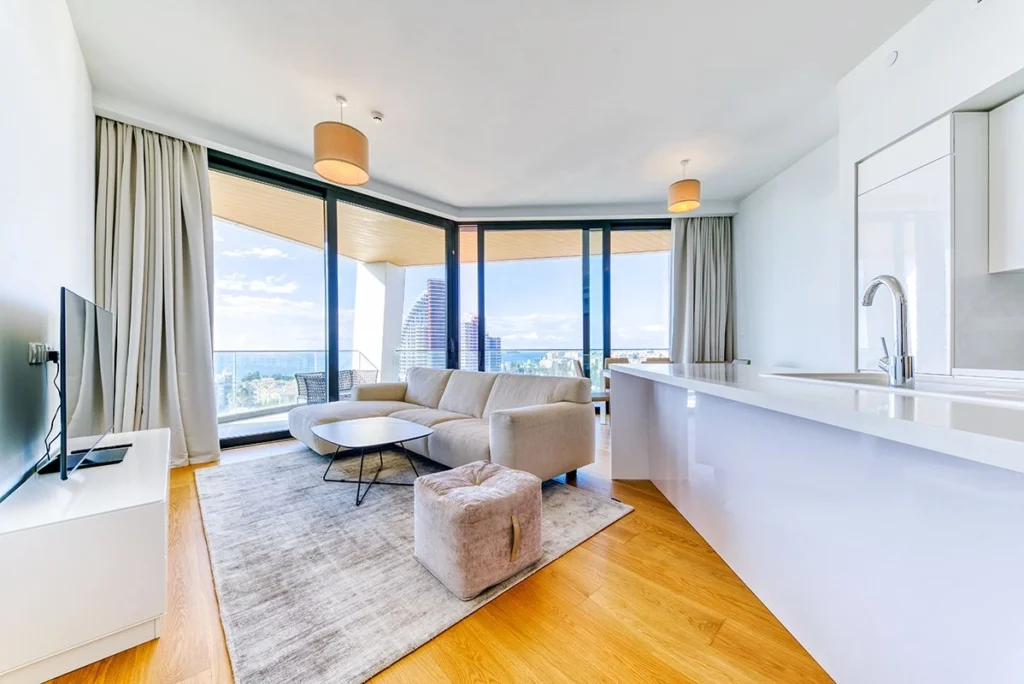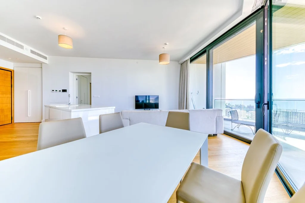 2 bedroom apartment of 132 m2 for rent in Germasogeia, Limassol. The apartments include 2 bedrooms, a kitchen, a living room, bathrooms and have a comfortable layout with panoramic sea views. The apartment is equipped with VRV air conditioning and underfloor heating. Residents of the complex use an indoor heated pool, a large outdoor pool, a playroom for children, a gym, a SPA area, an underground parking lot and a storage room, which ensures a high level of comfort and infrastructure inside the complex. The property is located in one of Limassol’s most luxurious high-rise complexes in Germasogeia, Limassol.