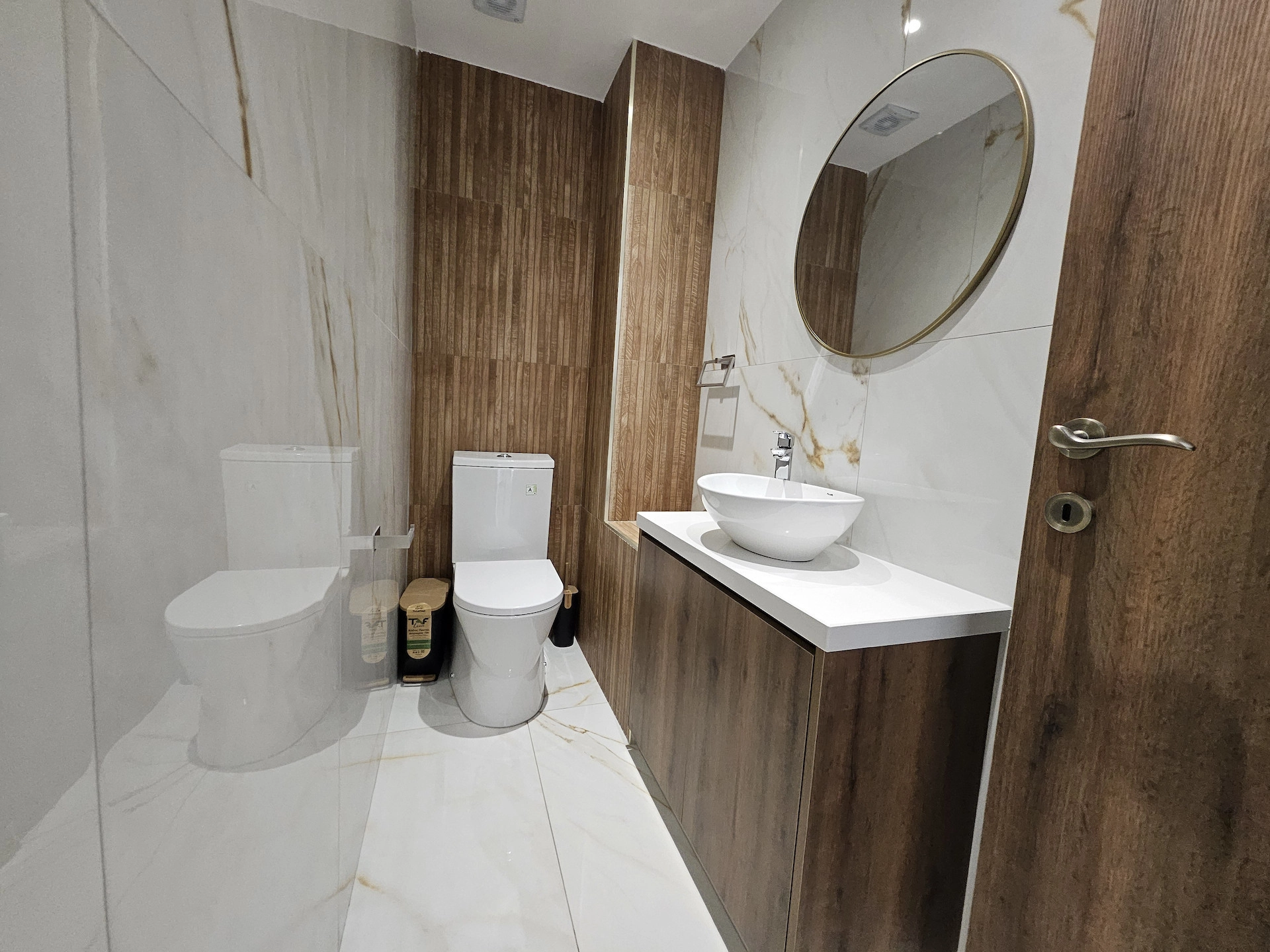 Completed in 2025, the property boasts a bright, open-plan living and dining area, complete with tasteful furniture and modern finishes throughout. A well-equipped kitchen, sleek tiled flooring, and large windows enhance the fresh and airy feel of the home. Three of the bedrooms are on the first level of the apartment. from an internal stair you can drive on an extra level that is a covered and closed space that could be use as 4th bedroom with an en suit toilet and shower. The same space could be easily use as extra sitting area or covered roof garden as it is closed with big sliding windows which could be open and joined with the covered veranda of the same level. The apartment is move-in ready, sparing you the hassle of furnishing or updating.