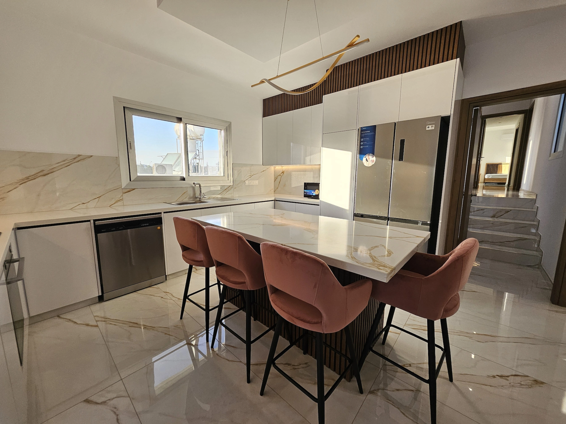 Available for rent, this key-ready, modern apartment offers spacious living on the top floor, up from a ground floor house, with a total internal space of 220 m2. Designed for comfort and style, the apartment is fully furnished and features 3+1 generous bedrooms and two contemporary bathrooms, providing plenty of room for families or professionals seeking quality accommodation.