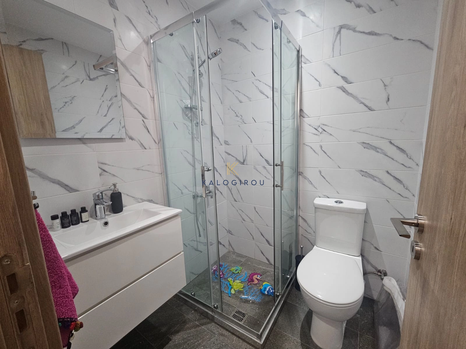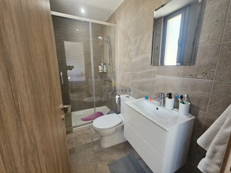 Apartment for Rent in Mcdonalds Drive Thru area, Larnaca. The property is a first floor apartment with internal covered area of 83 sqm and 30 sqm covered veranda. Each of the two bedrooms has a private bathroom (en suite), while the apartment is characterized by a unique design that combines functionality and aesthetics. In addition, it includes a storage room and a covered parking space on the ground floor.
