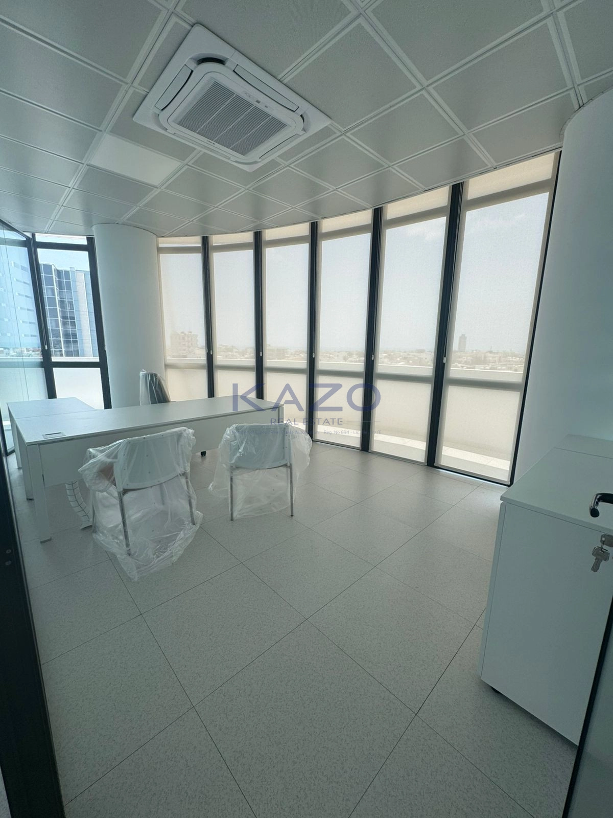 The office is fully furnished and features a sophisticated, contemporary design. The central AC system maintains the perfect temperature throughout the office, while large windows facing southeast provide ample natural light, creating a bright and inviting workspace.