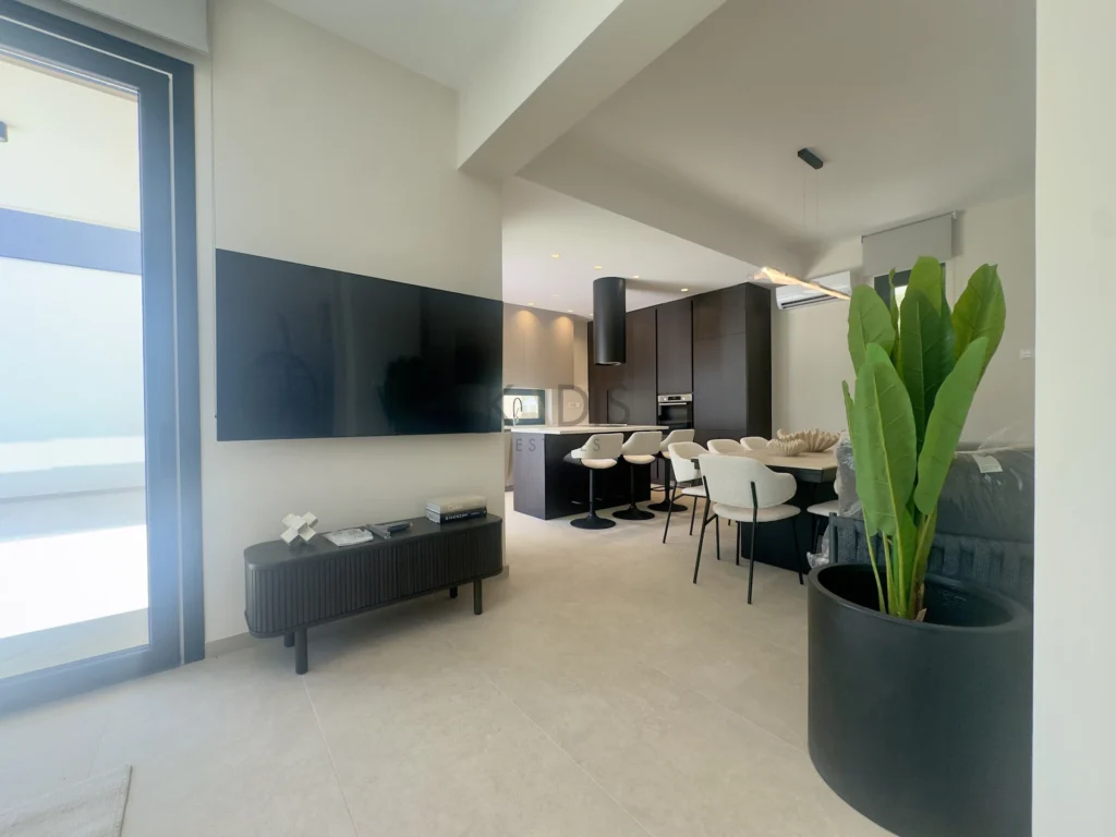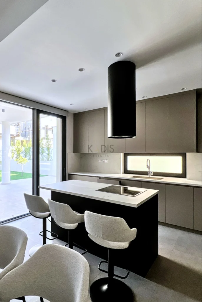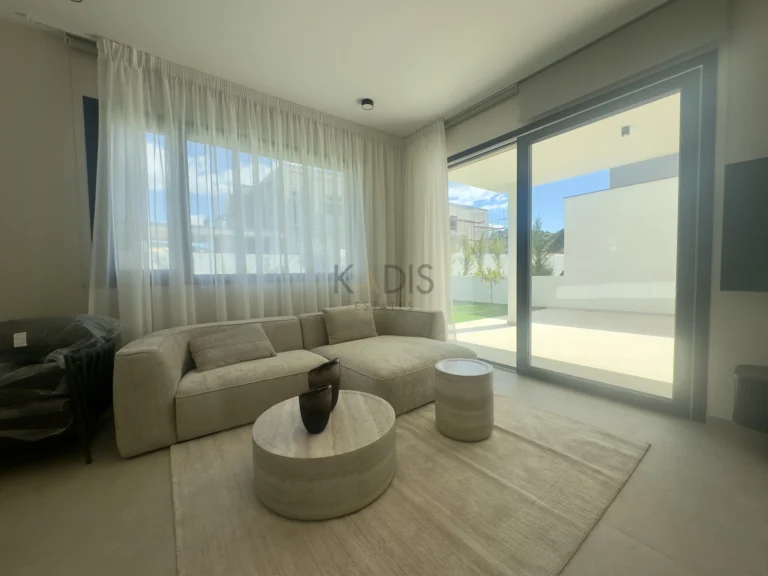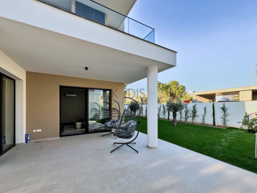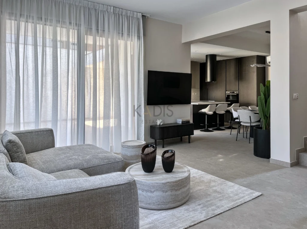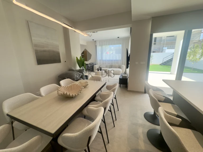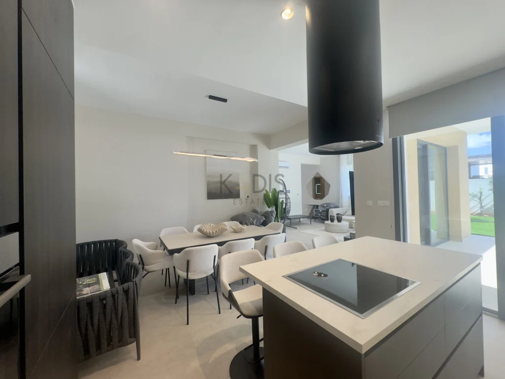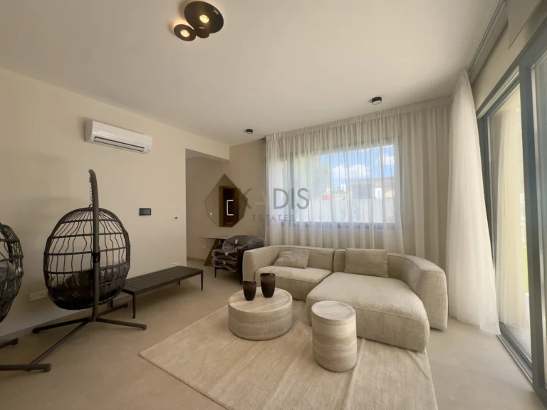 A brand-new luxury villa with a generous private garden and expansive open-plan living spaces, ideally situated in Agios Tychonas. Light-filled interiors create a welcoming and elegant ambiance throughout the home.