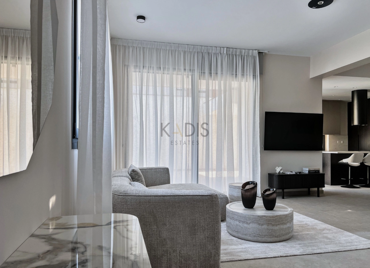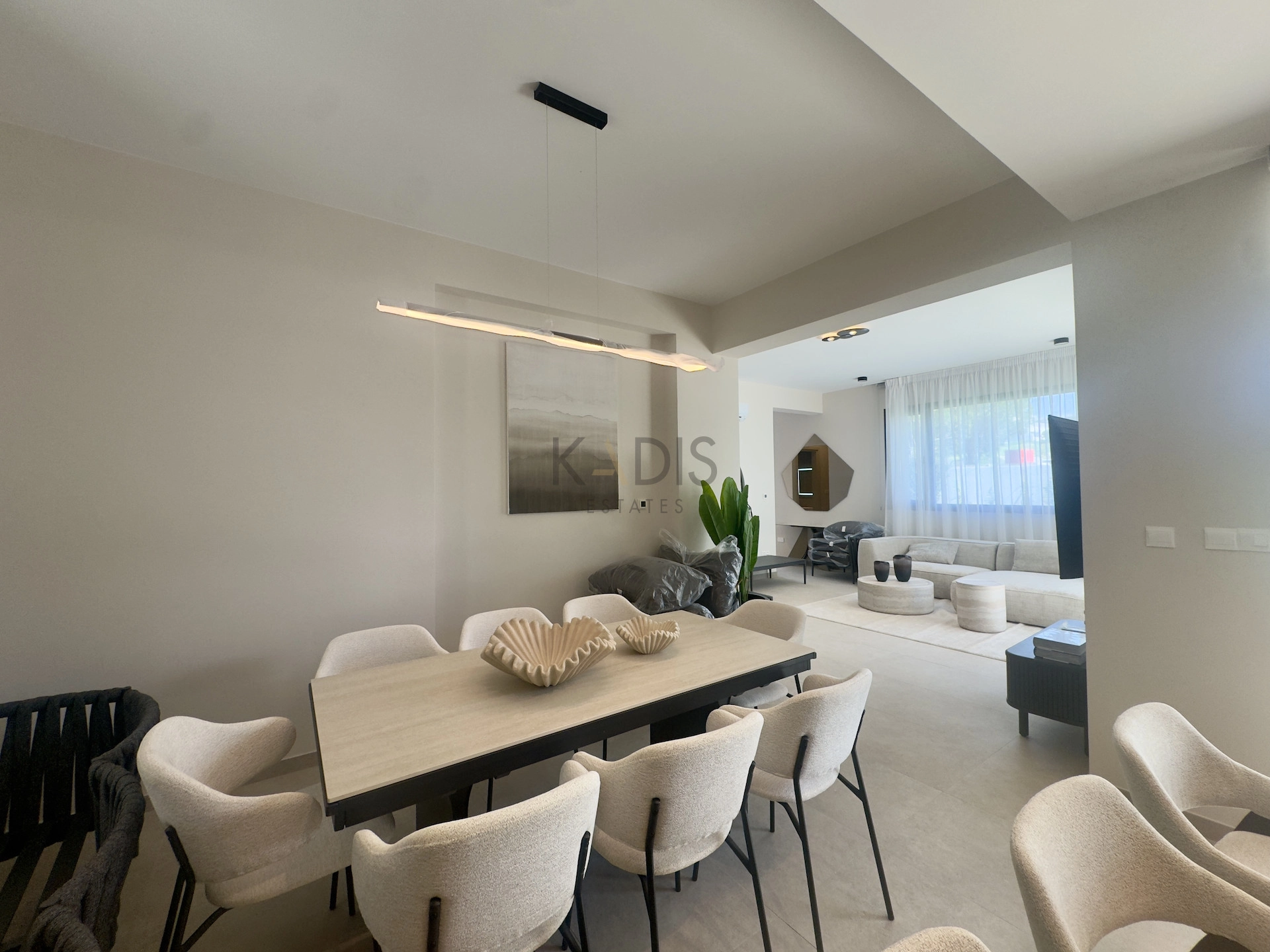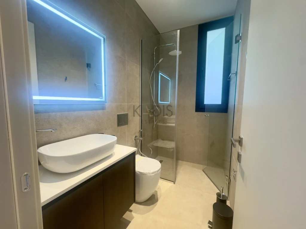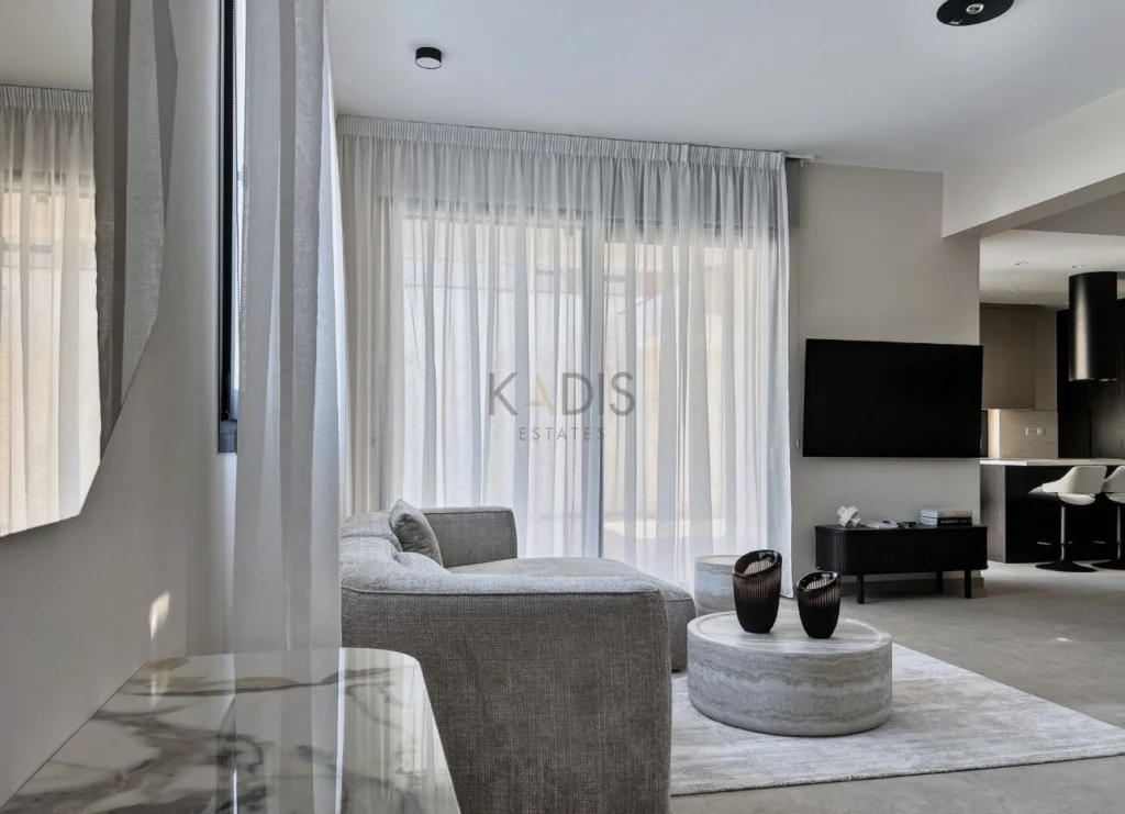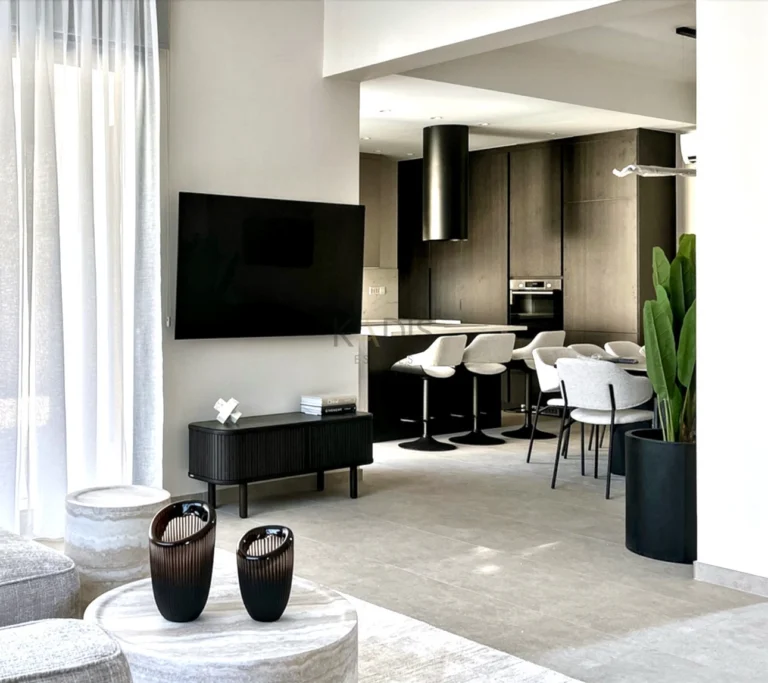 A brand-new luxury villa with a generous private garden and expansive open-plan living spaces, ideally situated in Agios Tychonas. Light-filled interiors create a welcoming and elegant ambiance throughout the home.