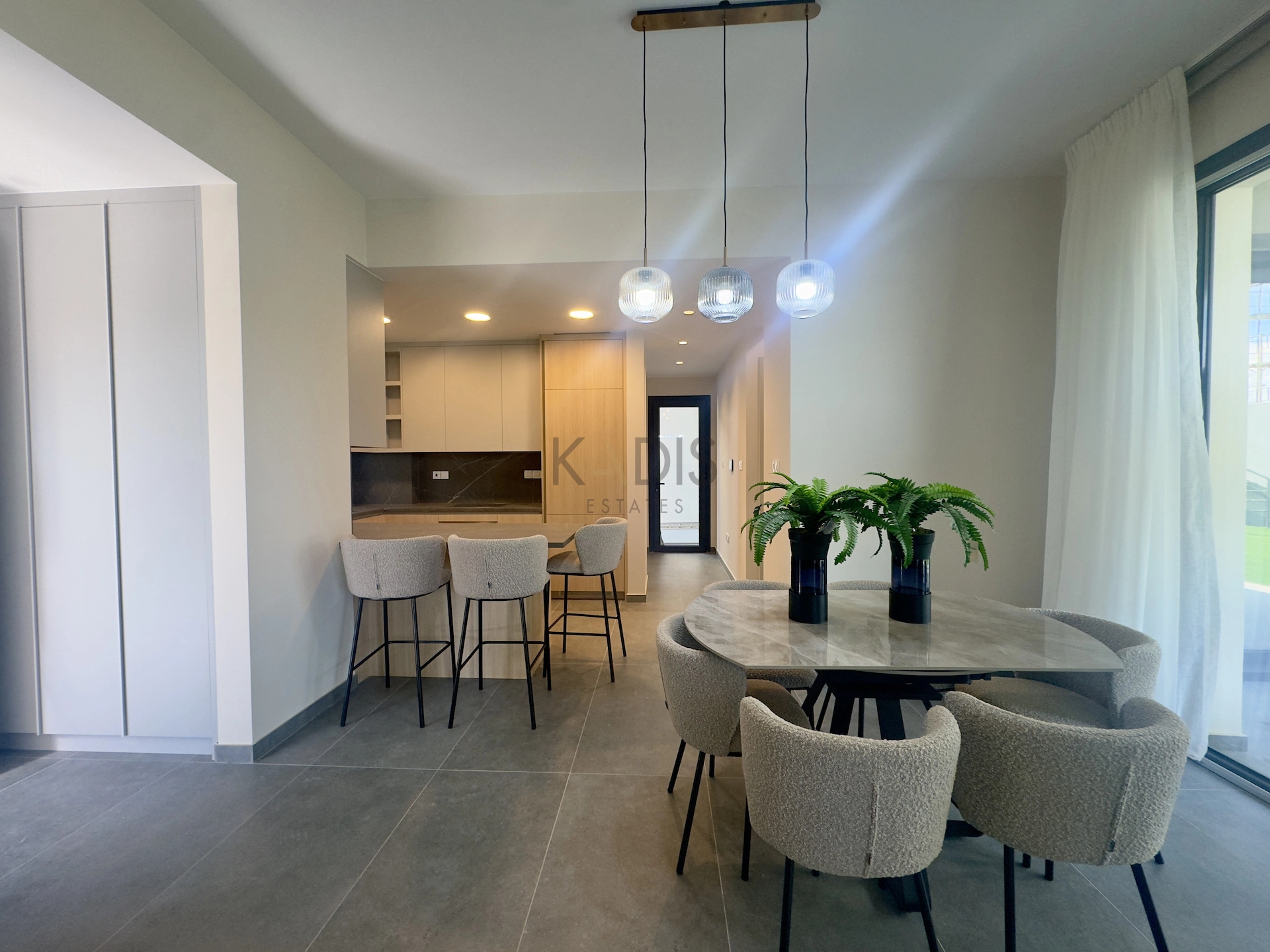 This brand-new luxury villa presents a generous private garden and a thoughtfully designed open-plan layout. Ideally located in Agios Tychonas, the property is flooded with natural light, offering an elegant, airy and welcoming atmosphere throughout.