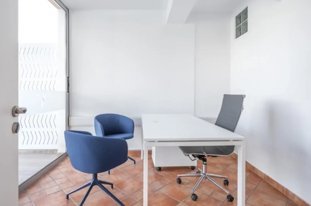 A standout feature is the spacious 35 m² private balcony, complete with seating—ideal for breaks, informal meetings, or outdoor workspace flexibility.