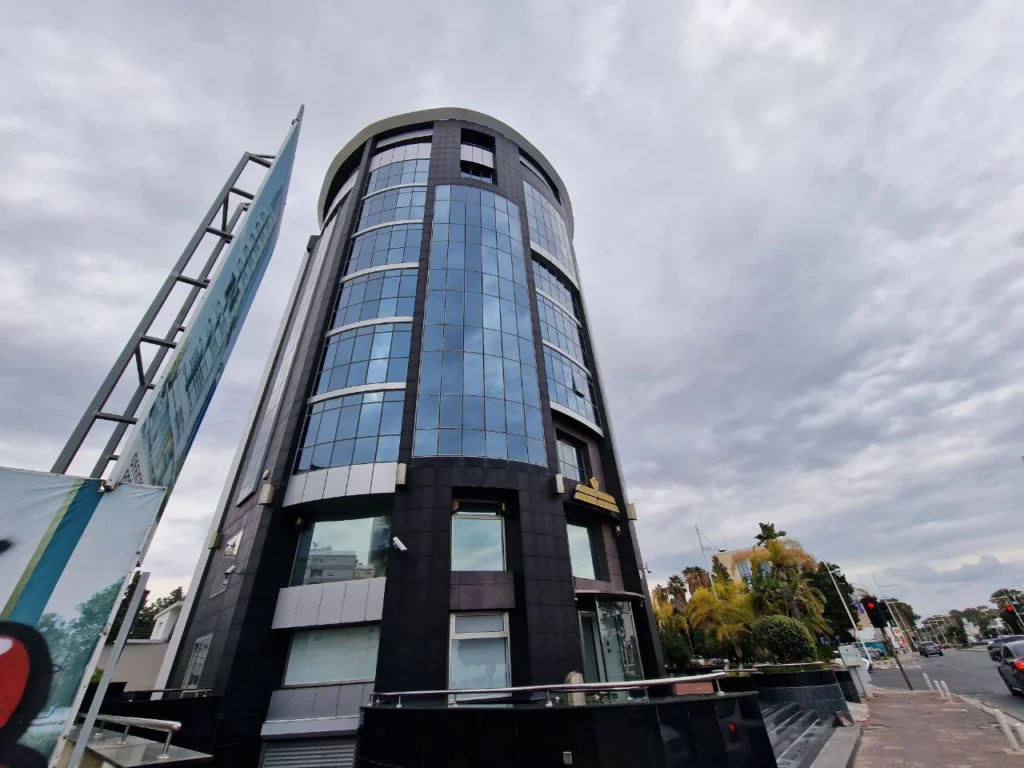 For rent beach front office building in Limassol. It has prime location, just across the road from the beach with accessibility from the center and highway. It has unobstructed sea view and located close to all necessary amenities. The building has 9 levels: basement, ground floor, mezzanine, 1-6 upper floors and uncovered roof garden. Also there is underground parking. The ground floor consists of entrance lobby, auxiliary spaces and outdoor parking spaces and has 231 m2. 1-6 floors consists of open plan offices with total covered area 1324 m2. Roof garden – 177 m2 and basement has 16 parking places with total area 540 m2.
