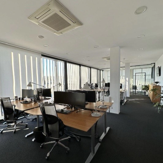 An office is available for rent in the Mesa Getonia district of Limassol. The building is located in one of the most attractive residential neighborhoods of the city, offering quick access to Limassol’s business center, cafes, restaurants, boutiques, and shopping malls. The office will be ready for occupancy from mid-July. The ceiling height is 3.2 meters, with provisions for installing a central VRV air conditioning system. The premises feature plumbing fixtures from European brands and thermo-aluminum window frames with double glazing. The building has five floors of offices and 35 parking spaces. Each floor includes 2–3 separate offices of optimal size for small and medium-sized businesses. Owners also have access to a spacious veranda. The building is located just steps away from prestigious business centers, banks, and high-end restaurants.