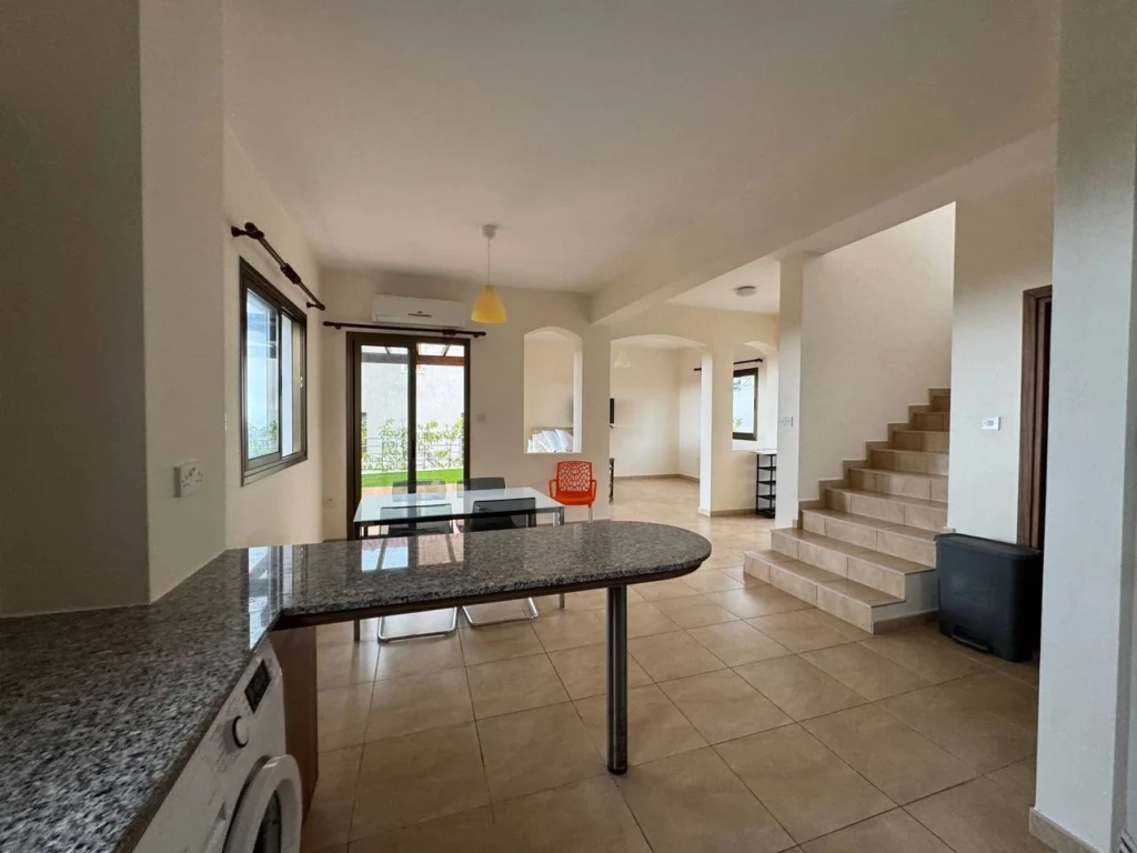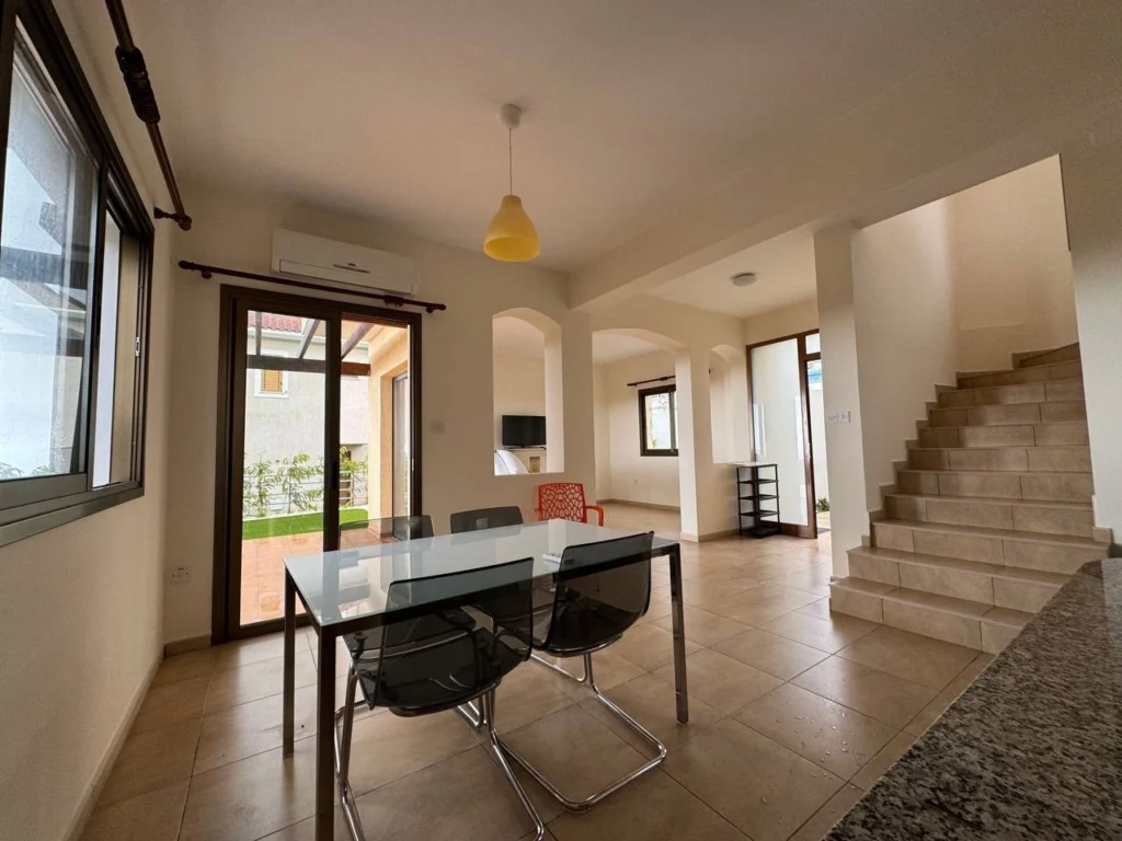For rent a two-bedroom house of 130 m2 in the area of Konia, Paphos. The residence includes 2 bedrooms, 3 bathrooms, a kitchen, a living room, a large garden, a private private pool and 2 spacious verandas on both floors. The house is unfurnished, equipped with all household appliances. The spacious and bright villa has a cozy atmosphere and a functional layout, ideal for a comfortable stay.