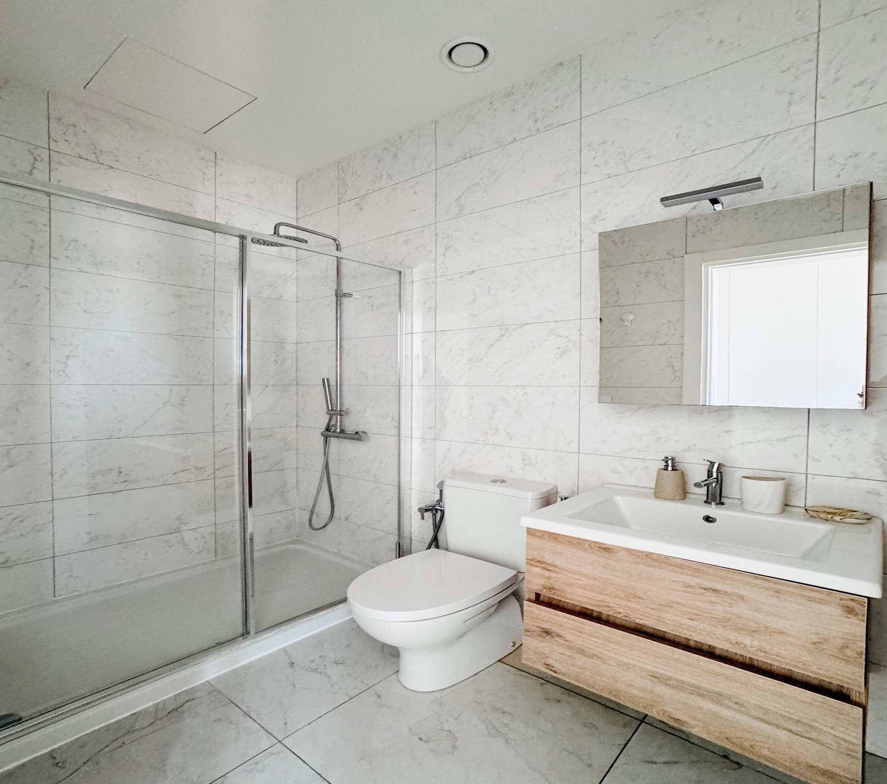 The property features two bright bedrooms, including a master bedroom with en-suite shower, a main bathroom, and an additional guest WC. The open-plan layout creates a welcoming atmosphere, while large veranda spaces provide the perfect spot to relax or entertain.