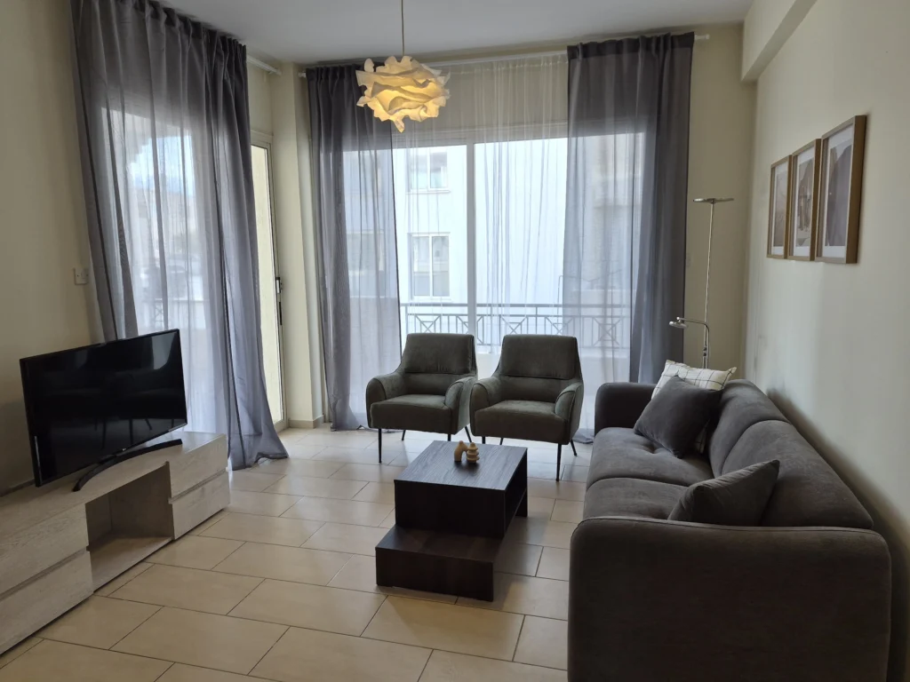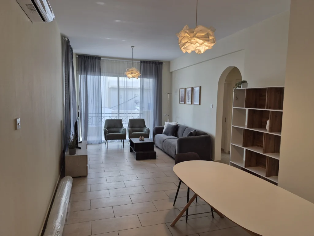 For rent: This charming two-bedroom, two-bathroom apartment offers comfortable living in the peaceful neighborhood of Agios Theodoros. Located on the ground floor, the apartment spans 85 square meters of internal space, providing a generous layout ideal for couples or small families.