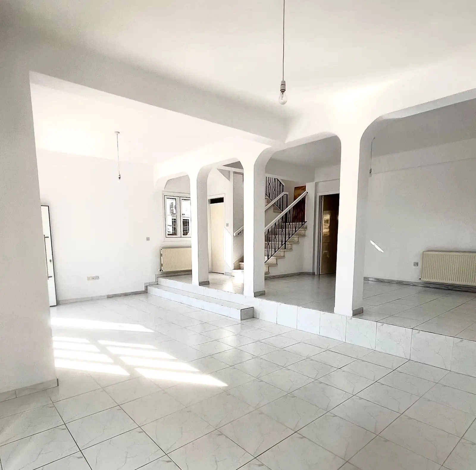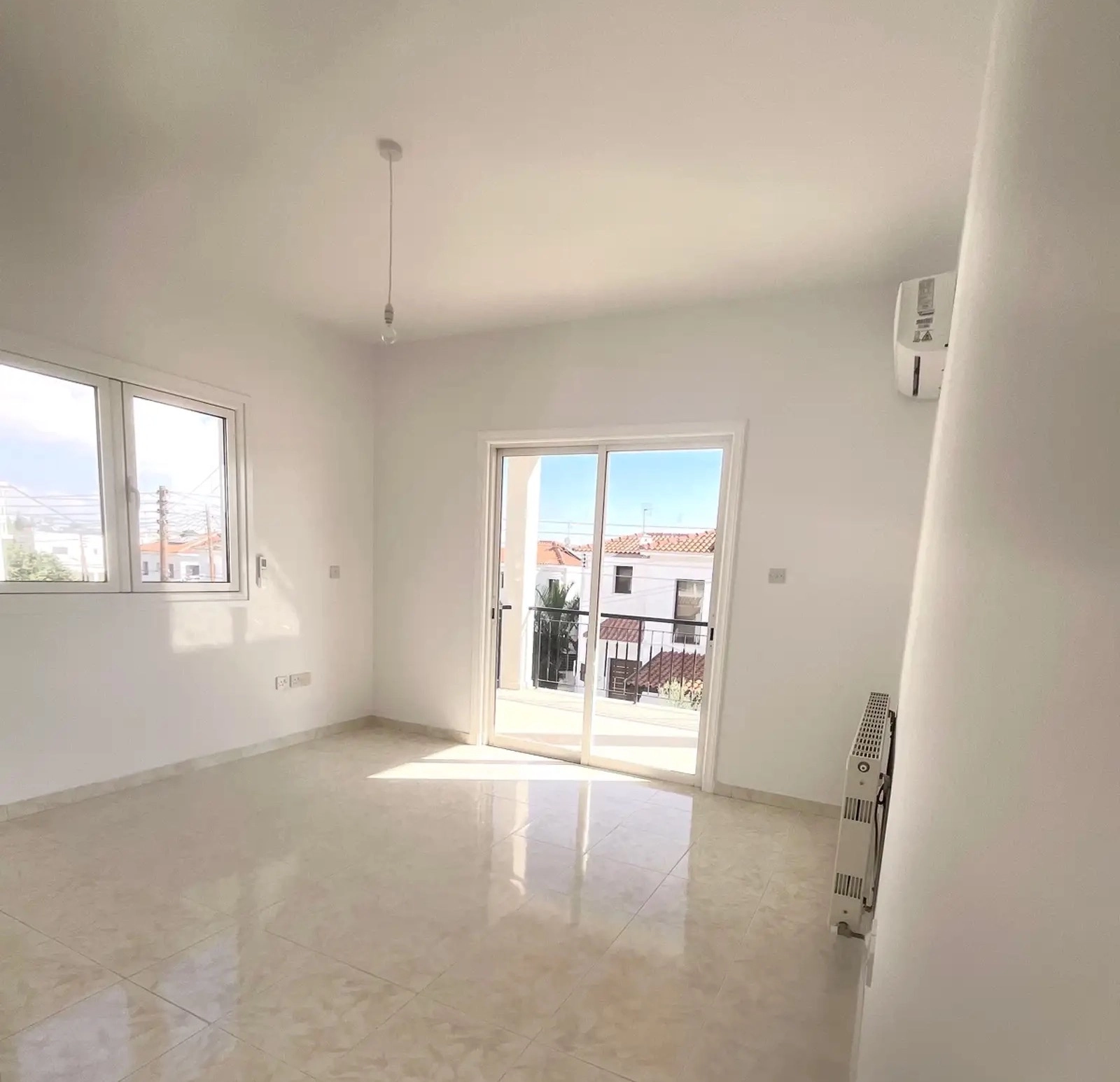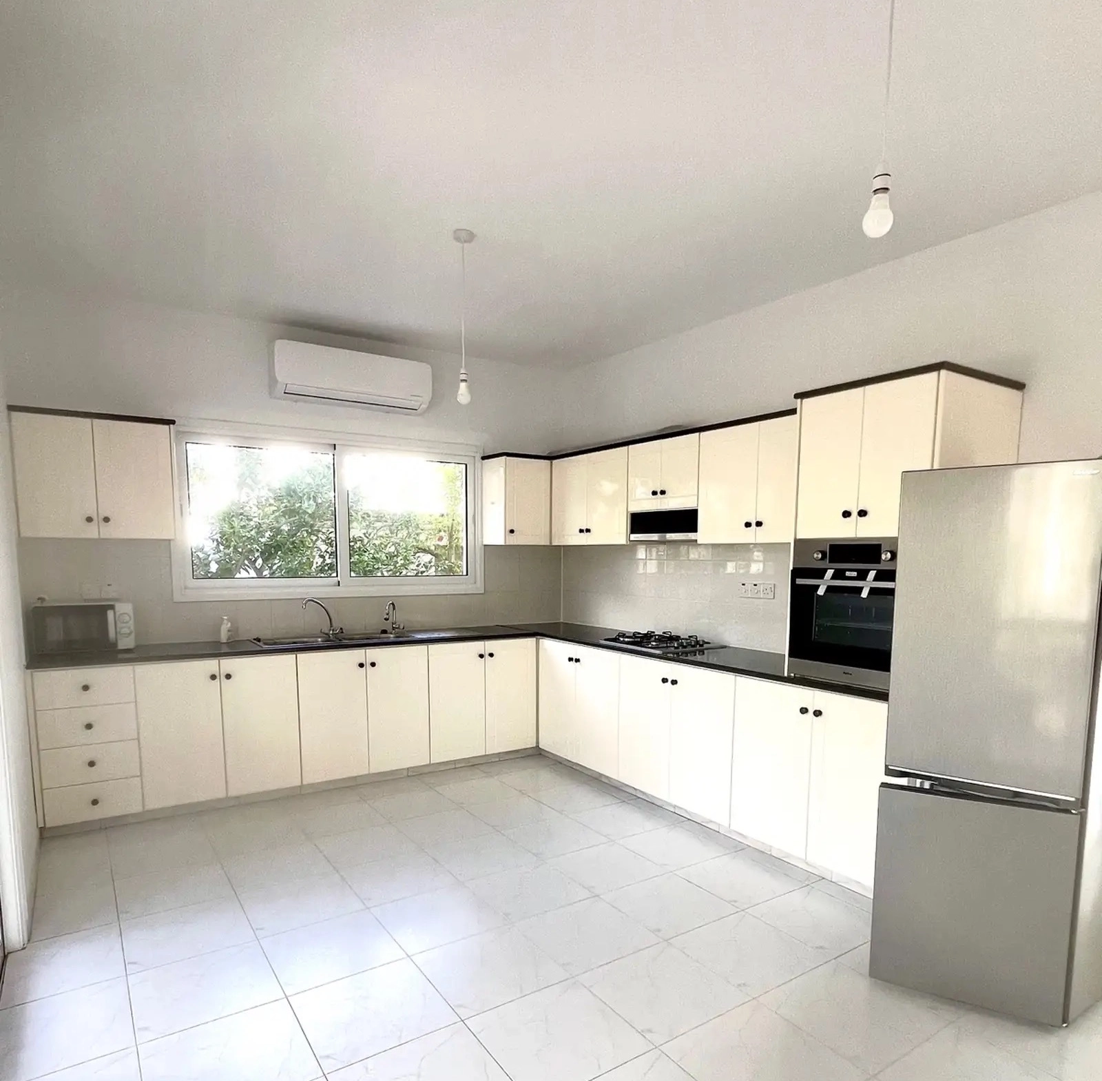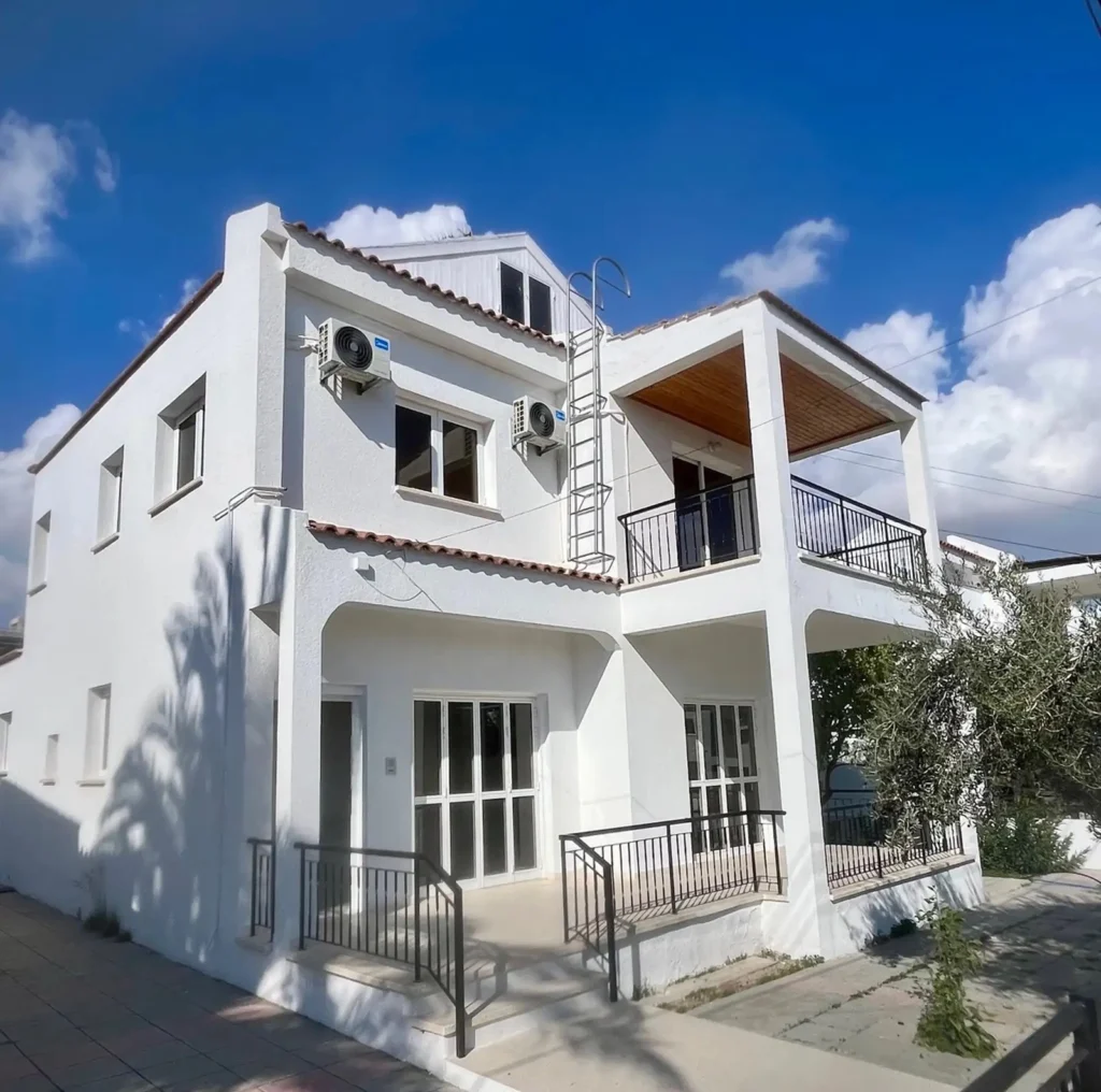 For rent a three-bedroom house with an area of 213 m2 on a plot of 375 m2 in the area of Aradippou, Larnaca. The house includes 3 bedrooms, 2 bathrooms, a guest toilet, a separate kitchen, a living room, balconies, a covered veranda of 13 m2, an open veranda of 34 m2, a garden and a storage room. The house is unfurnished, equipped with household appliances and engineering systems: oven, refrigerator, hob, microwave oven, air conditioners in all rooms, radiators. The property was built in 1994 and is located in a quiet residential cul-de-sac with minimal traffic. All the bedrooms are located on the upper floor, the master bedroom has its own bathroom. There are fruit trees on the plot. The house has an outdoor storage room that can be used as an office or workshop. Pets are allowed. It is possible to install furniture for an additional fee. The property is located in the Aradippou area, just a 7-minute walk from Lidl and less than 10 minutes by car from the Mall of Larnaca.