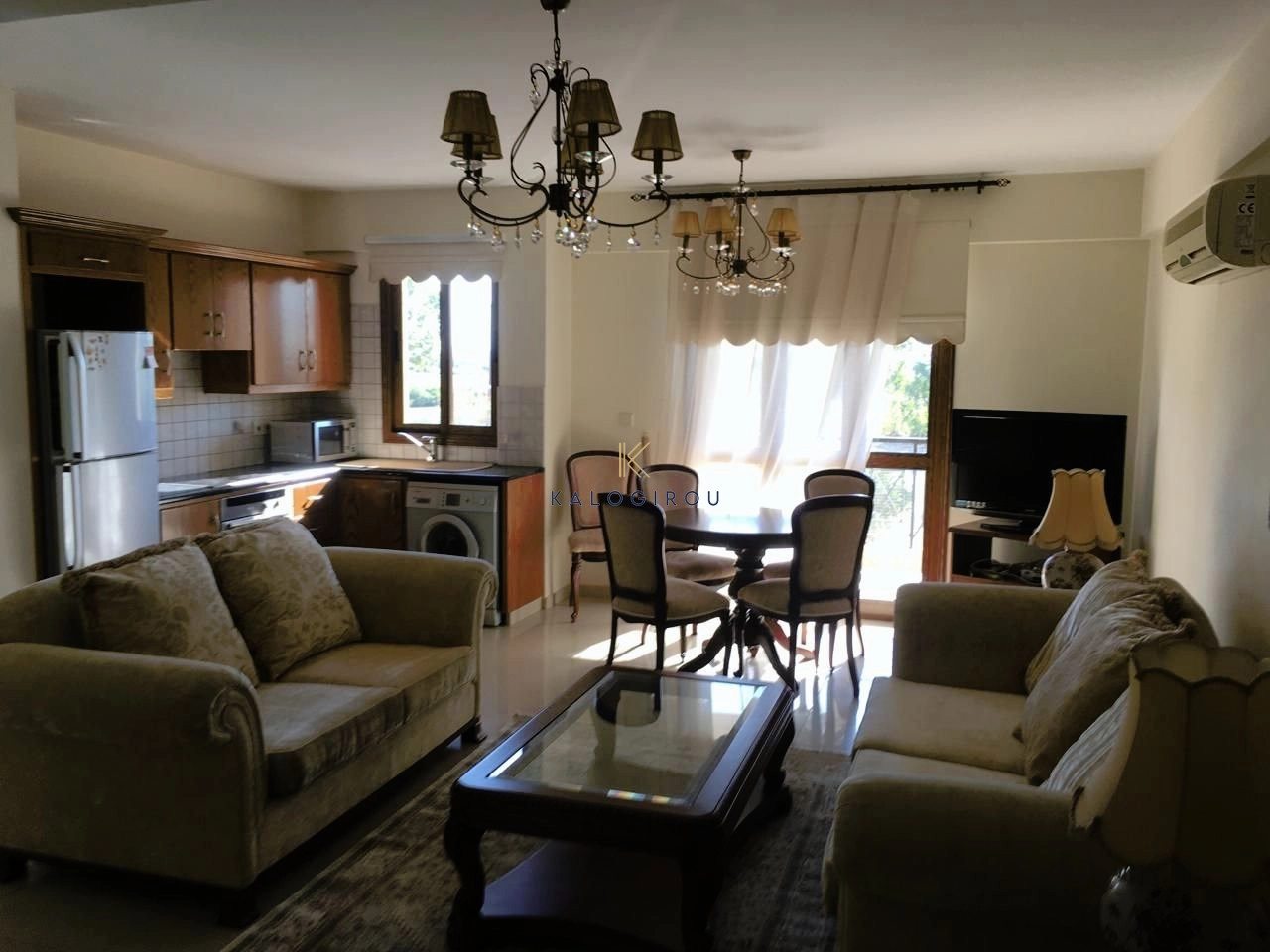 Apartment for Rent in Livadia area. The property consists of an open plan kitchen and living room with dining area, two bedrooms, one common bathroom with wc and covered parking .