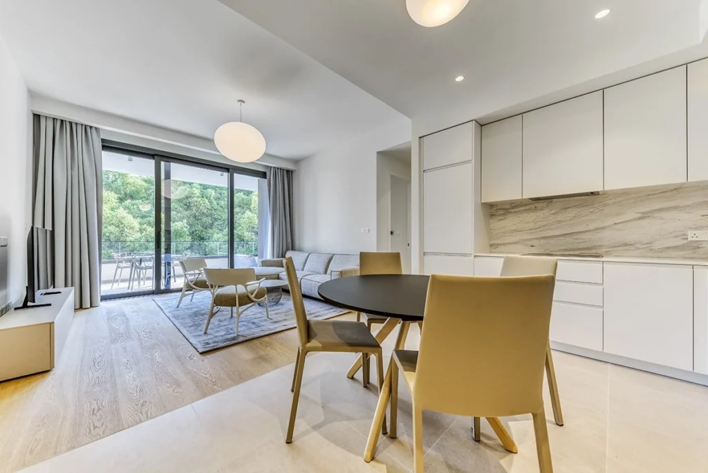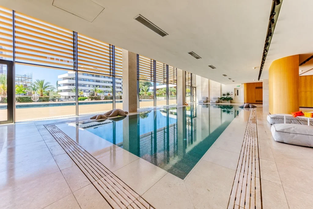 This luxury 2-bedroom apartment in Potamos Germasogeias, Limassol is available for rent in a prestigious and quiet neighborhood of the tourist area, just 500 meters from the seafront. Set within an elegant gated residential complex in central Limassol, the property offers privacy, comfort, and access to premium communal amenities, including a landscaped garden, outdoor swimming pool, gym, and covered parking.