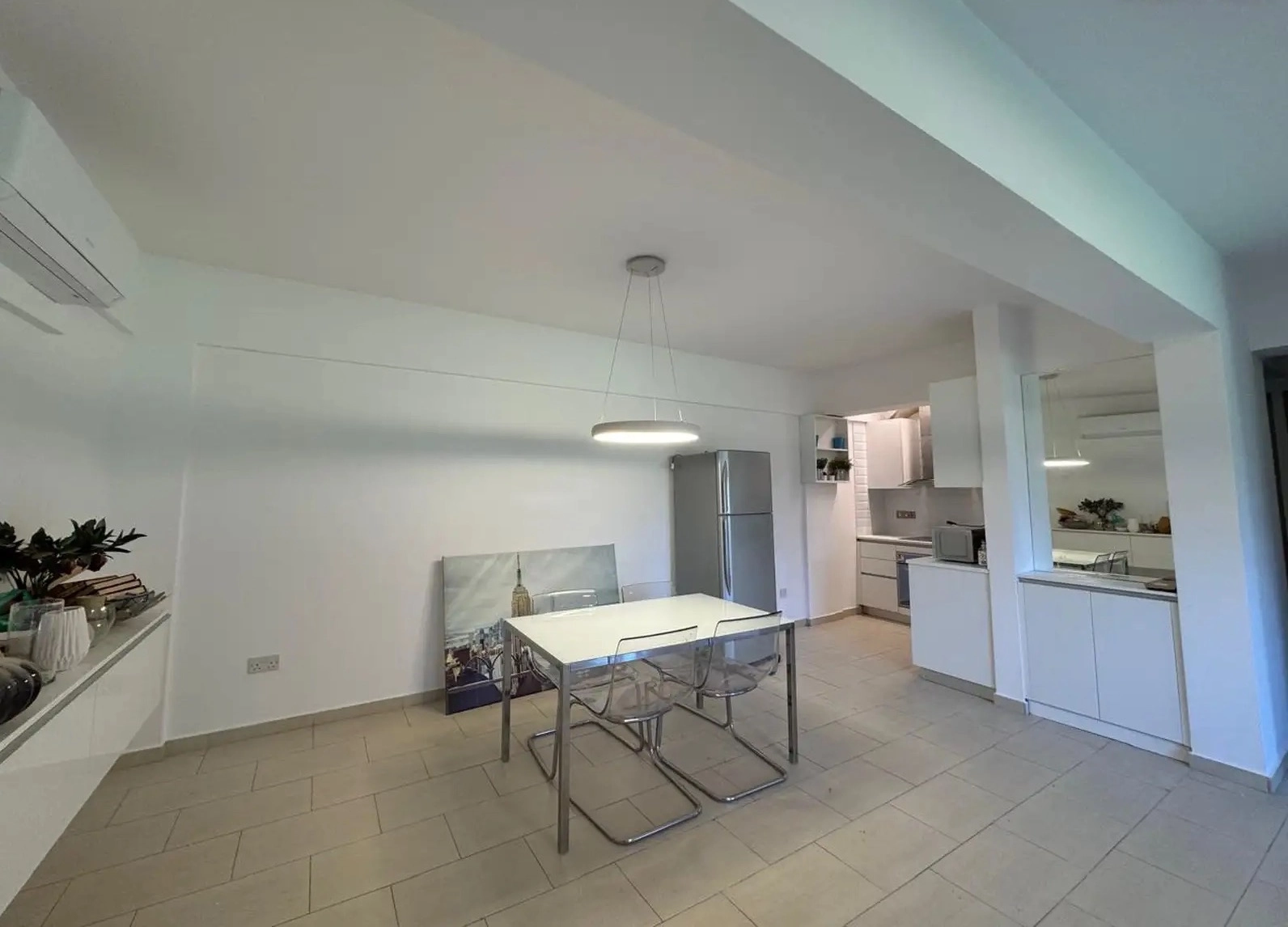 Two-bedroom apartment of 100 m2 for rent in the area of Agios Athanasios, Limassol. The apartment includes 2 bedrooms, 1 bathroom, a kitchen and a bright living room. The apartment is located on the ground floor. The apartments are fully furnished and equipped with household appliances, air conditioners are installed in all rooms. The property is located in a small, quiet residential complex near the sea. The apartment has recently been completely renovated and features a modern interior and a bright open living area. The complex has a communal swimming pool and one outdoor parking space. The complex is well maintained and suitable for a comfortable stay near the coast.