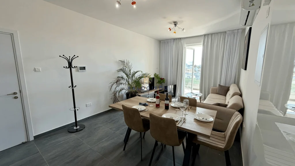 Brand new, modern, two bedroom penthouse for rent in Livadia area, Larnaca. It is located in a new neighborhood with premium and enviable position, just 900 meters from the beach in the Larnaca, Dekeleia tourist area and only 3km far from Foinikoudes beach. Close distance to restaurants, supermarkets, self-serving shops and food stores. Easy access to Larnaca, Nicosia, Ayia Napa Motorway. Just a 10-minute drive to Larnaca Town.
