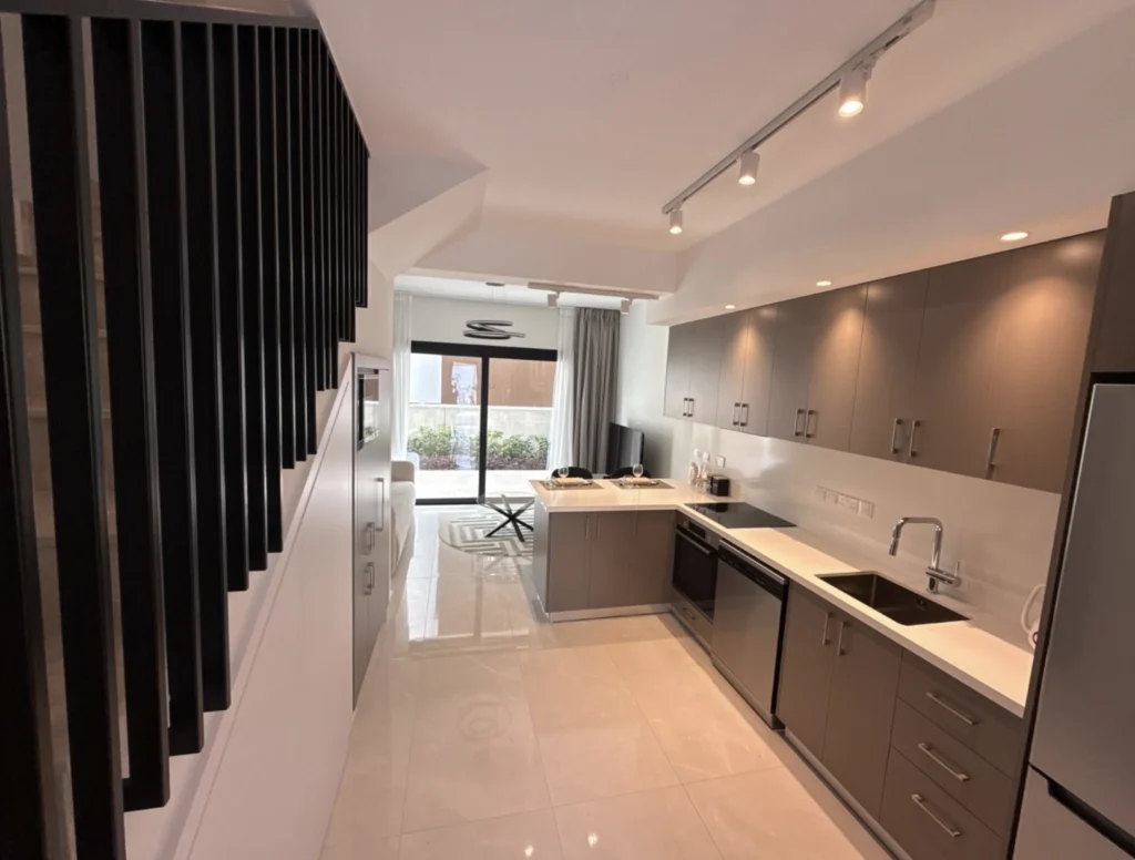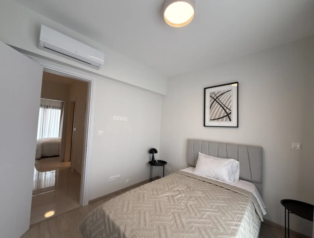 The home features two bedrooms, one bathroom, and a guest toilet, along with a bright living area and high-quality modern finishes throughout. It is fully furnished and ready to move in, making it ideal for professionals or small families.