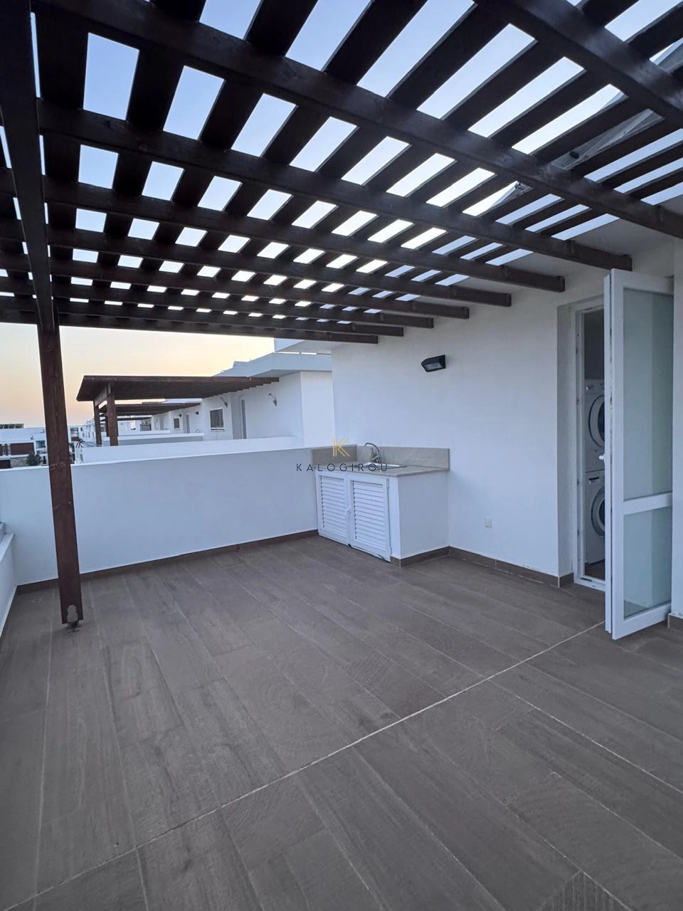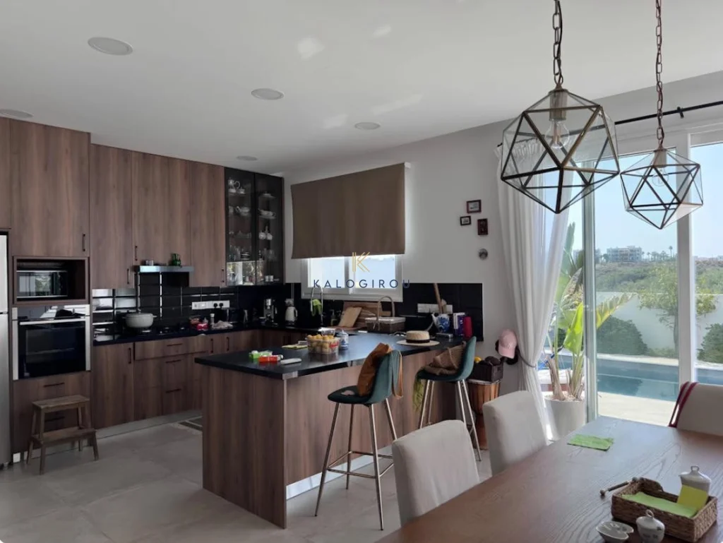 House for Rent in Livadia area, Larnaca. The property consists of 3 bedrooms, open plan kitchen, living and dining area, A/C, central heating, one common toilet with bathroom bath, three shower en-suite, 4WC, covered parking, 50sq. m of roof garden, a beautiful big garden with a private swimming pool, covered verandas.
